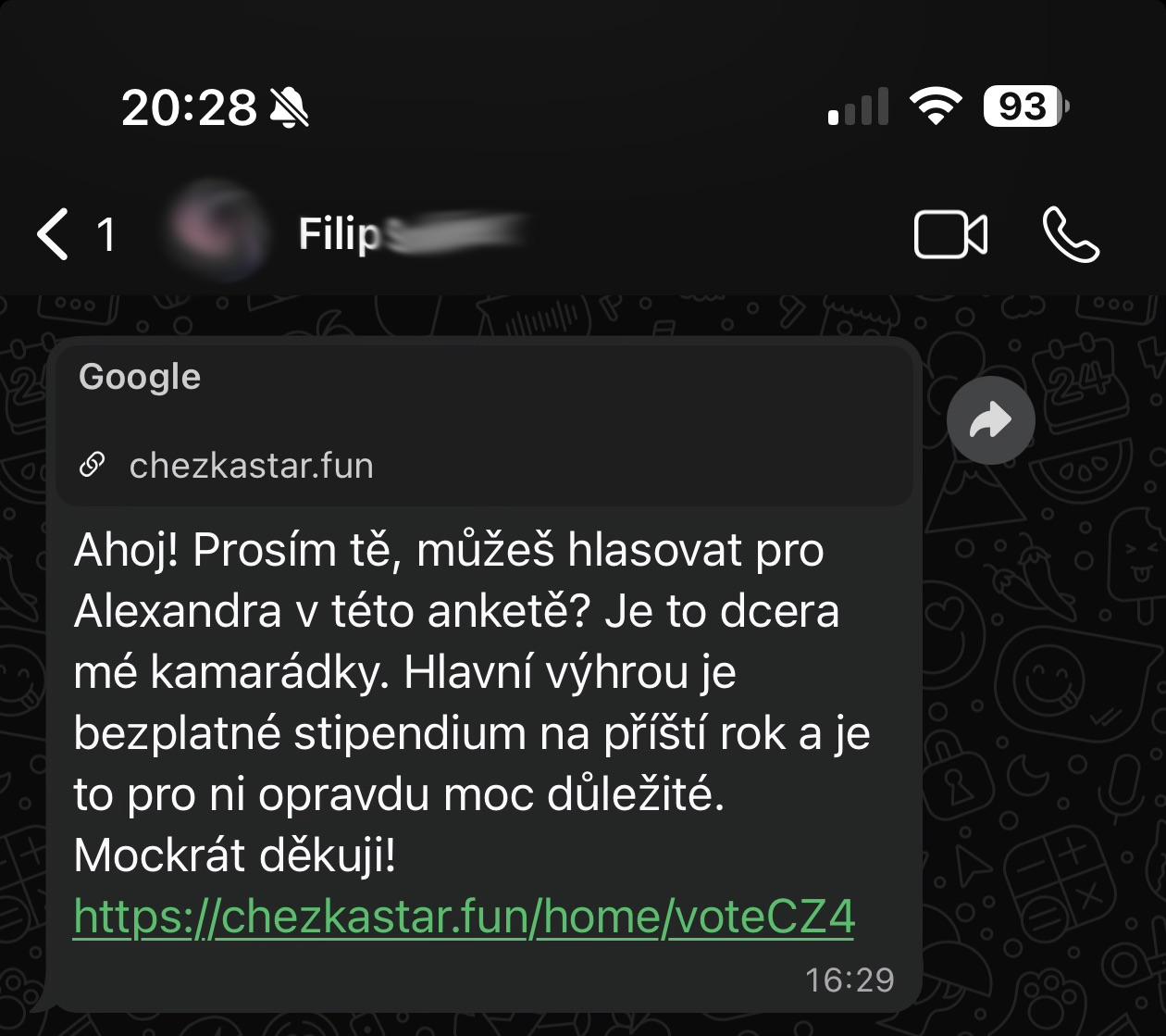 - Na WhatsApp vám může přijít zpráva od kamaráda, abyste hlasovali v anketě
