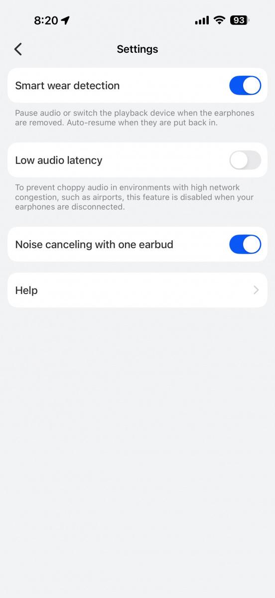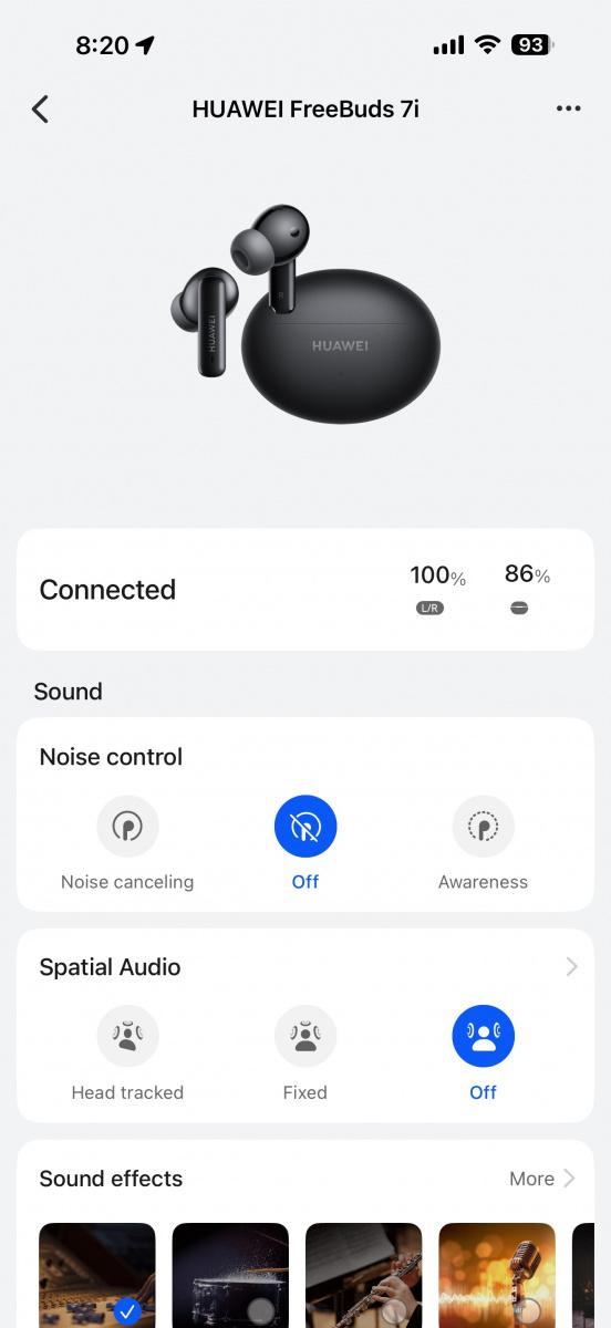 FreeBuds 7i se párují přes aplikaci Huawei AI Life, kterou najdete v AppGallery i v Google Play či App Store. Ačkoli funguje spolehlivě a připojení probíhá rychle, uživatelská zkušenost kazí absence českého překladu. To může být pro méně zdatné uživatele nepříjemnost, protože některé funkce a nastavení jsou popsány anglicky.