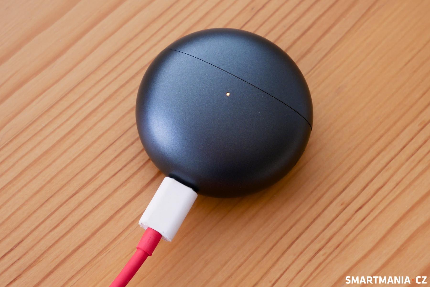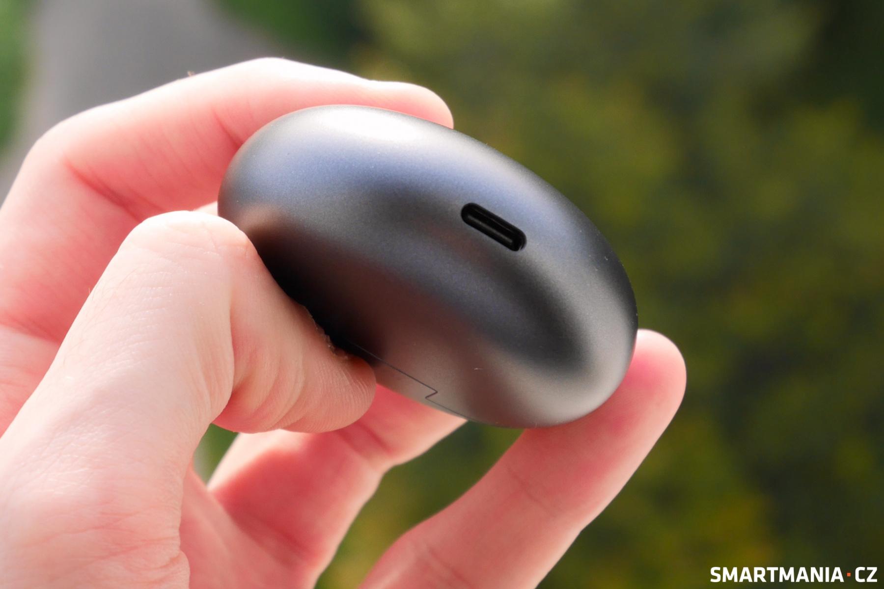 Pouzdro je kompaktní, ve tvaru oblázku a dobře se vejde do kapsy. Působí uhlazeně, jen o něco robustněji, než by muselo. Na čelní straně je kontrolní LED dioda, dole pak port USB-C. Bezdrátové nabíjení bohužel chybí, což by v roce 2025 potěšilo i v nižší třídě. Párovací tlačítko je umístěno z boku – jednoduché, ale funkční řešení. Celkově působí design nenápadně, prakticky a přesně odpovídá tomu, co od levných, ale dobře udělaných špuntů očekáváte.