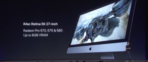 U 27″ 5k iMacu se dočkáme nových grafik Radeon Pro 570, 575 & 580 s až 8 GB VRAM. Vyšší grafický výkon nabídnou i menší iMacy – klasický 21,5″ model i varianta se 4k displejem. Poslední novinkou budou dva Thunderbolt 3 porty na zadní straně.
