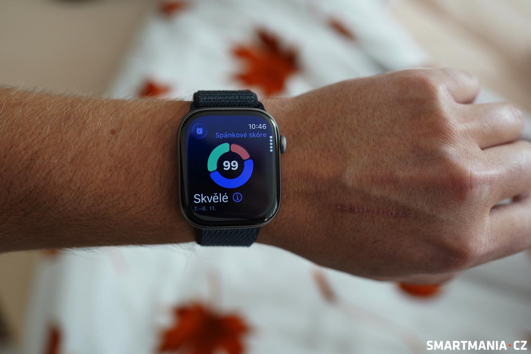 Vylepšení se dočkal i monitor spánku. Hodinky sledují jednotlivé spánkové fáze, dechovou frekvenci, saturaci a tep, a díky tomu dokážou upozornit na možné příznaky zmíněné spánkové apnoe. Novinkou v systému watchOS 26 je tzv. Spánkové skóre, které kombinací několika metrik bodově ohodnotí kvalitu vašeho spánku. Nejde ale o žádnou exkluzivní funkci pro Series 11, po updatu softwaru ji dostali i majitelé pět let starých Series 6.