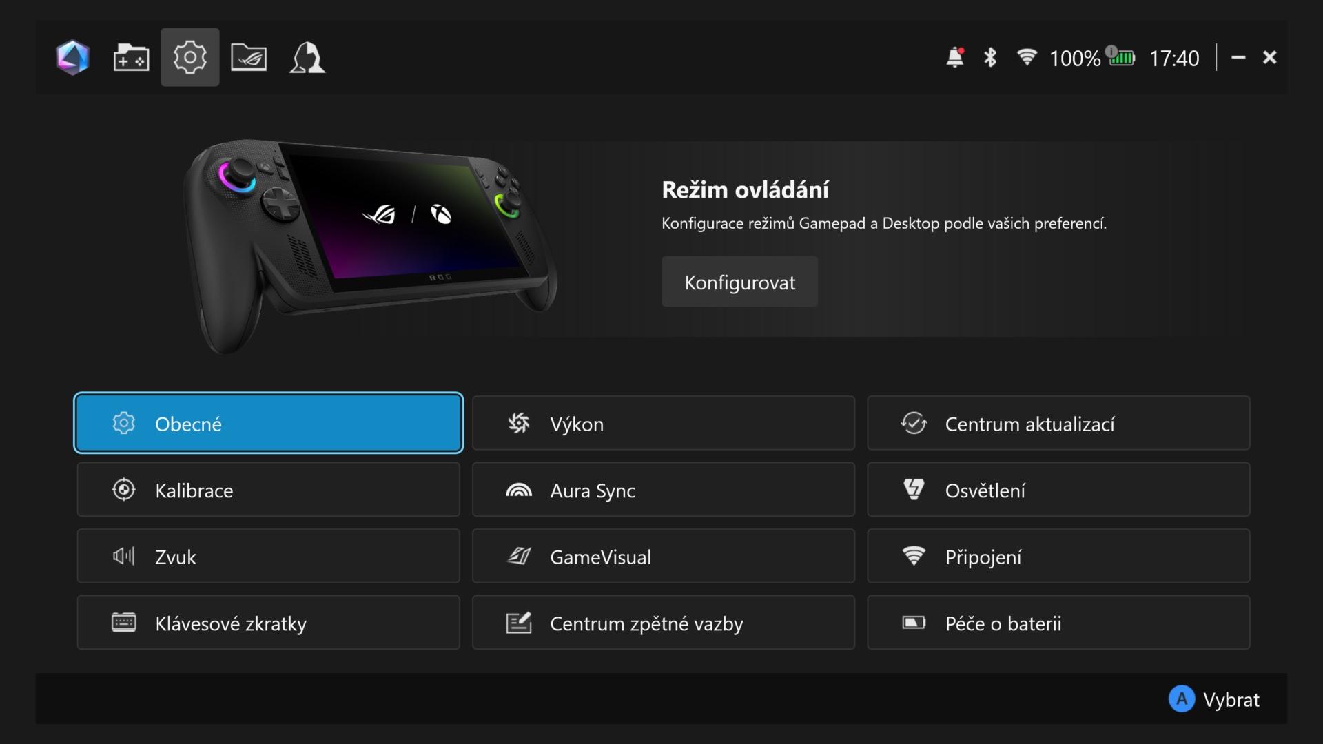 Od ostatních zařízení ROG Ally se toto zařízení také odlišuje jedním tlačítkem navíc s logem Xbox. Napíšu to zcela na rovinu – žádnou speciální funkci nemá a v praxi dubluje funkcionalitu tlačítka pro vyvolání řídícího centra, které je hned vedle. Na rozdíl od něj ale tlačítko Xbox vyvolá sice stejnou nabídku, ale vedlejší záložku.