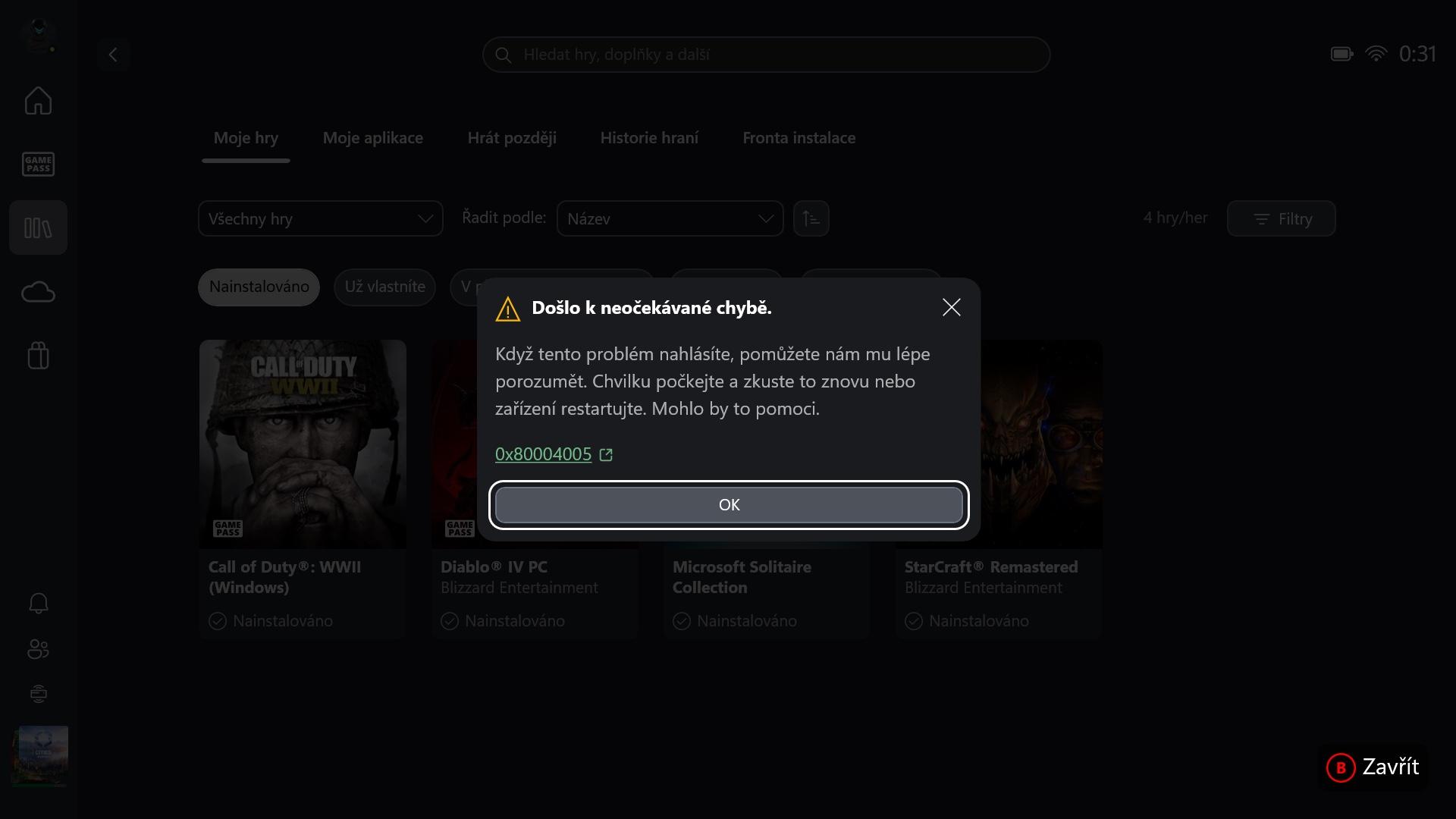 Microsoft alespoň připravil rozšířenou verzi aplikace Xbox, která se spouští nad systémem po každém spuštění. V rámci ní dokážete fungovat víceméně až do chvíle, než začnete do zařízení instalovat hry. Handheld vám totiž velmi rychle připomene, že toto není žádná konzole, ale plnohodnotný počítač, takže se připravte na Game Pass pro PC, stahování launcherů velkých vydavatelů, neustálé aktualizace ovladačů a systému a také chybové hlášky. Zkrátka standardní Windows zážitek.