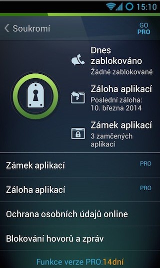 Služba Ochrana proti krádeži aplikaci rovněž přidává na hodnotě. Stači si vytvořit účet a přihlásit se. Následně můžete skrze webovou stránku lokalizovat vaše zařízení, uzamknout jej nebo vzdáleně vymazat (pouze za předpokladu, že je zařízení připojeno k internetu). V nabídce Soukromí lze blokovat nevyžádané hovory a zprávy. Je zde také zámek aplikací a záloha aplikací, avšak pro aktivování potřebujete upgradovat na plnou PRO verzi.