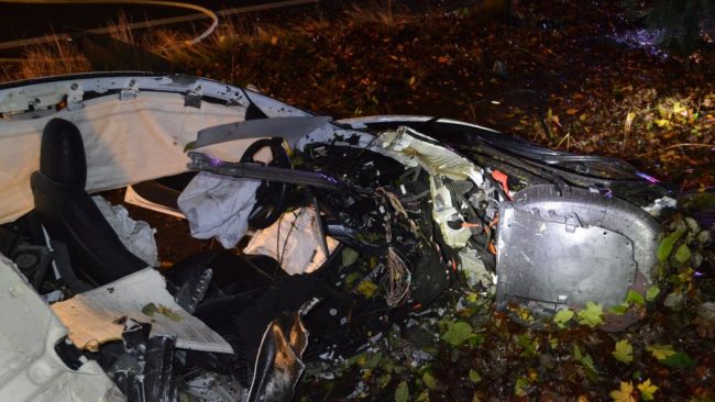 Model 3 skončil v dezolátním stavu, strana spolujezdce byla od konstrukce vozu urvána. Jako zázrakem se nikomu nic nestalo, řidič se po nehodě snažil utéci, byl však policisty chycen o 3 bloky dále.