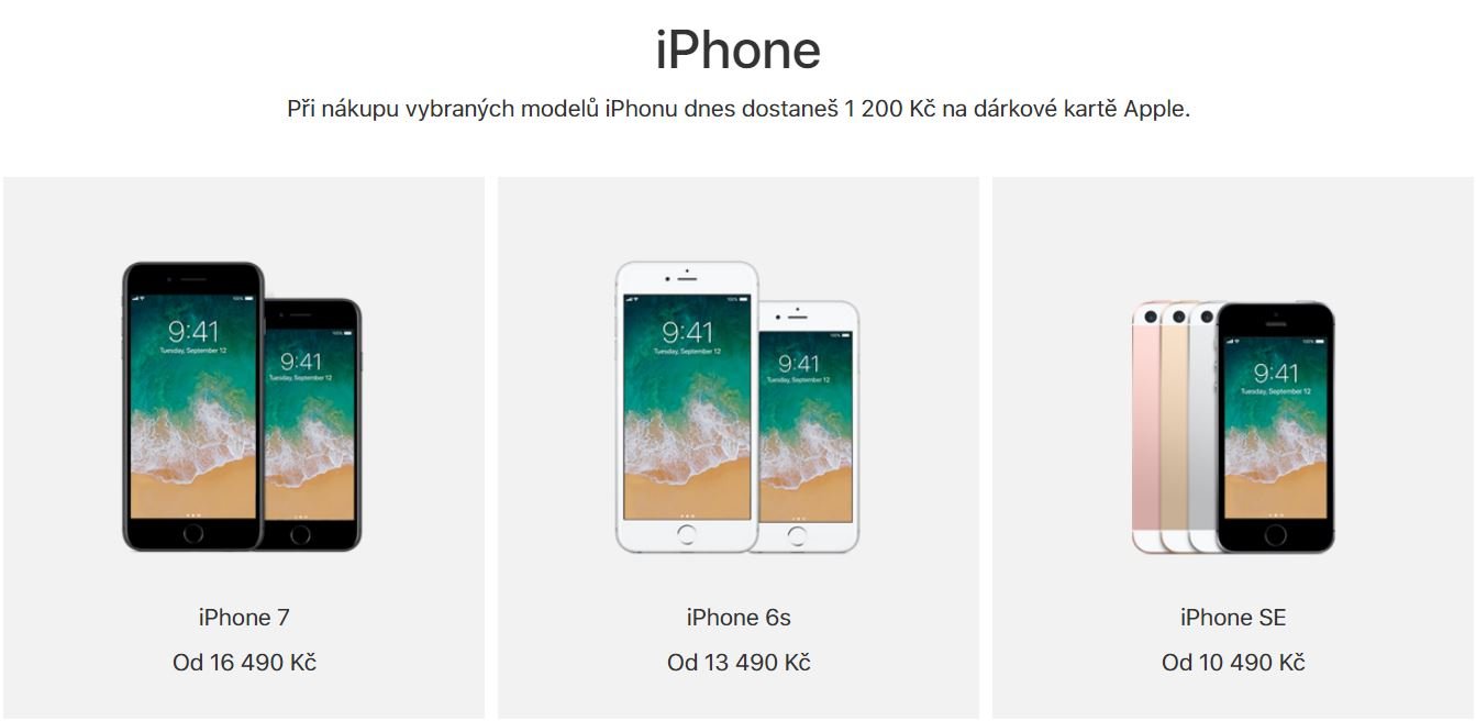 1 200 korun vám Apple dobije, i pokud si koupíte iPhone, ovšem pouze, jedná-li se o iPhone 6s (Plus) nebo iPhone 7 (Plus). Letošní iPhony do akce zařazeny nejsou, k iPhonu SE dostanete na Apple kartu 600 korun.