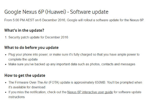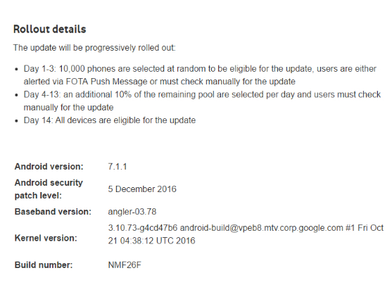 Tento údaj se má týkat Nexusu 6P, zřejmě se ale zároveň dočkají i ostatní podporované modely – Nexus 5X, 6, 9, Player a Pixel C. Součástí aktualizace, která povýší systém na verzi 7.1.1, má být i prosincový bezpečnostní update. Celá aktualizace bude vyžadovat stažení zhruba 650MB balíčku.