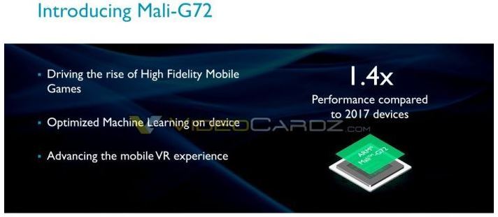 Představen bylo i nové grafické jádro Mali-G72 GPU postavené na architektuře Bifrost, které má oproti svému předchůdci nabídnout až o 20 procent vyšší výkon a o 25 procent lepší efektivitu.