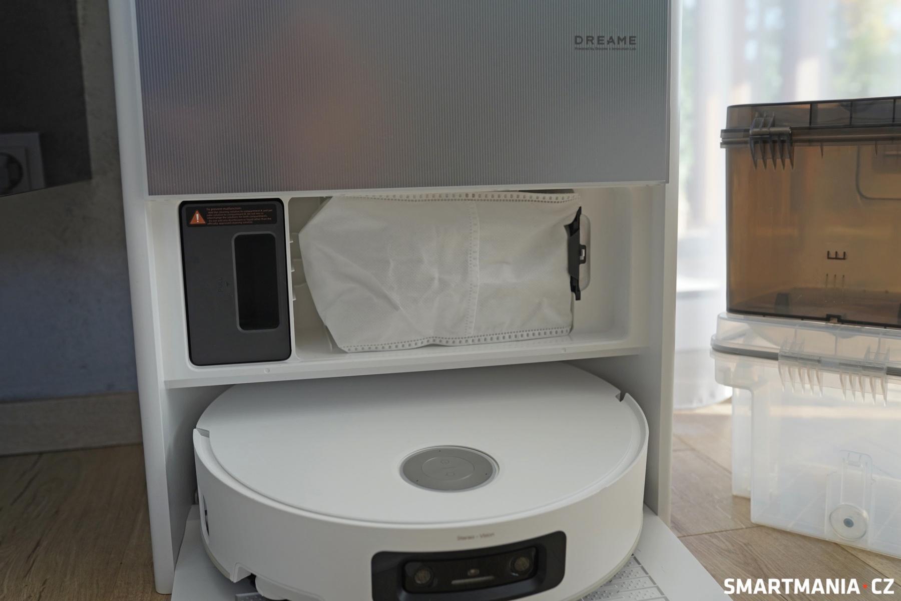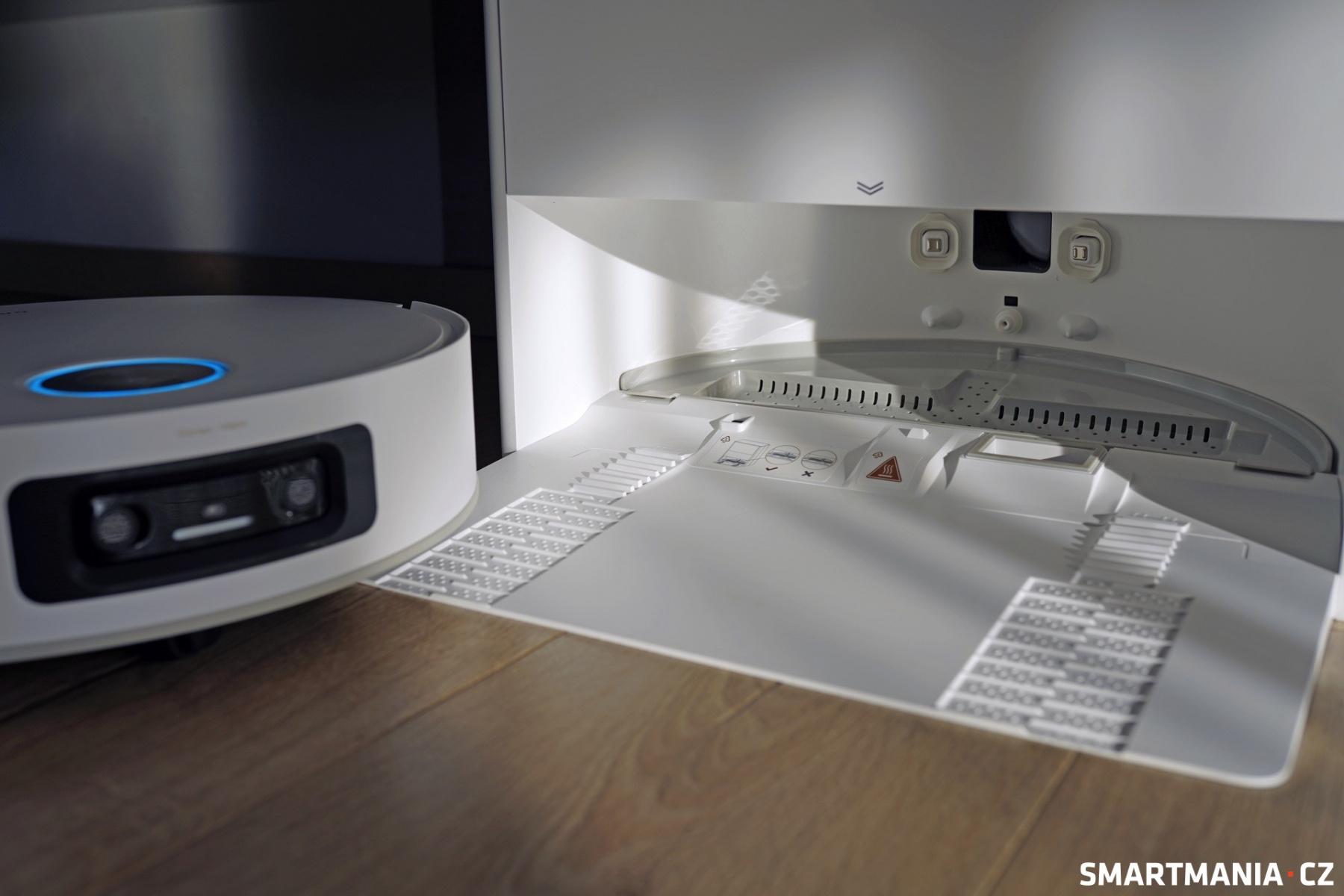 V praxi se tak staráte pouze o výměnu vody a čas od času o doplnění čisticích prostředků – nádobka je zde rozdělena do dvou částí. Do jedné se leje klasický čisticí prostředek, do druhé speciální přípravek, který výrobce doporučuje používat v případě, že máte domácí mazlíčky. Dokovací stanice automaticky horkou vodou o teplotě 100 °C propláchne mopovací válec a následně jej pomocí teplého vzduchu (75 °C) vysuší.