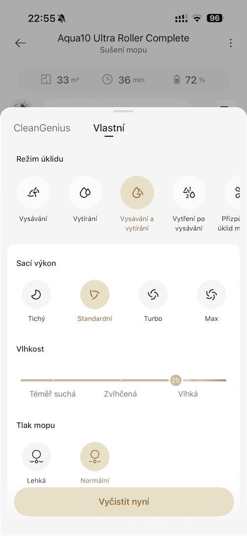 Pokročilejší uživatelé mají v aplikaci samozřejmě k dispozici plně manuální režim úklidu, nicméně já se po většinu testování spoléhal na „automatiku,“ ke které nemám sebemenší výhrady.