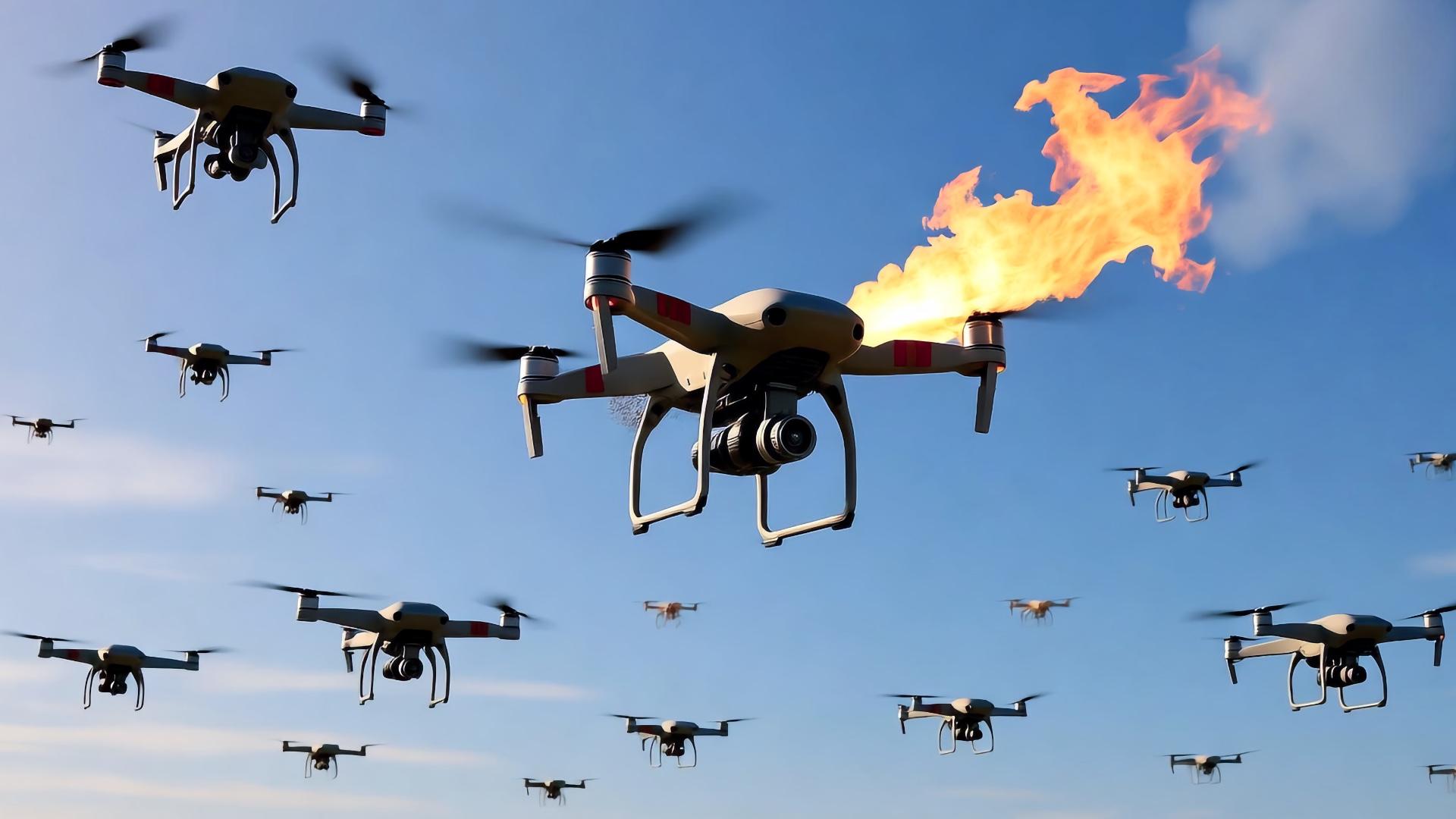 - Drony na obloze vzplály a začaly padat k zemi jako ohnivé koule při apokalypse