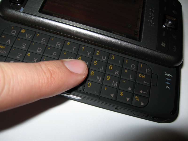 Aby výrobce získal více prostoru pro klávesy, umístil softwarové klávesy na boční strany a nikoliv nahoru, jako tomu bývá například u komunikátorů od HTC. Ze začátku může toto umístění někomu připadat netradiční, nicméně dá se na něj poměrně rychle navyknout; pokud například budete přecházet z E-Tena M700, nebude vám to činit žádné potíže, jelikož má zcela stejně řešené rozmístění tlačítek. Subjektivně je na tom klávesnice M800 v porovnání se starším modelem mnohem lépe a opravdu ji není co vytknout, postrádám snad jen světlocitlivý senzor, který by reguloval podsvícení tlačítek podle okolního světla; na ten výrobce zapomněl. Na pravém okraji se nacházejí dvě diody, které signalizují aktivní klávesy Fn a Caps, tím prohlídka po prostoru klávesnice končí.