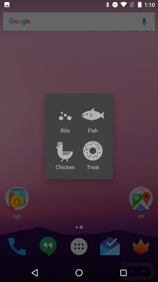 Po aktivaci hry pak navštivte notifikační centrum s rychlými přepínači a přidejte si do něj novou položku pojmenovanou ???? Android Easter Egg. Po ukončení editačního režimu by se mezi přepínači měla objevit ikonka prázdné misky s názvem Empty Dish, po kliknutí na ni pak dostanete na výběr ze čtyř jídel (granule, ryba, kuře, pamlsek), kterým můžete na misku naplnit. Touto návnadou pak lákáte virtuální kočky, které chytáte do své sbírky.