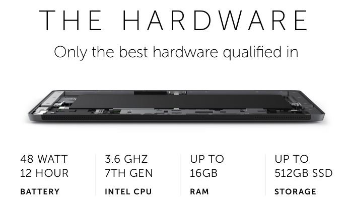 Tablet není tak tenký jako v případě Surface Pro, což ale v tomto případě není na škodu – je v něm větší, 48Wh baterie, která má zajistit až 12hodinovou výdrž; a také se na tělo vešlo mnohem více portů, konkrétně 2 × USB-A (USB 3.1), 2 × USB-C (1 × USB 3.1; 1 × Thunderbolt 3), 3,5mm jack a čtečka karet microSD. O bezdrátovou konektivitu se stará Wi-Fi 802.11ac a Bluetooth 4.2, k pořizování snímků je připravena 2Mpx čelní kamerka, případně 5Mpx hlavní fotoaparát. Ve výbavě nechybí ani čtečka otisků prstů a GPS.