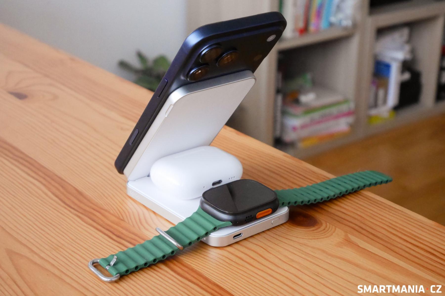- To znamená nabíjecí stojánek MagSafe, nabíječka pro sluchátka i Apple Watch a k tomu powerbanka