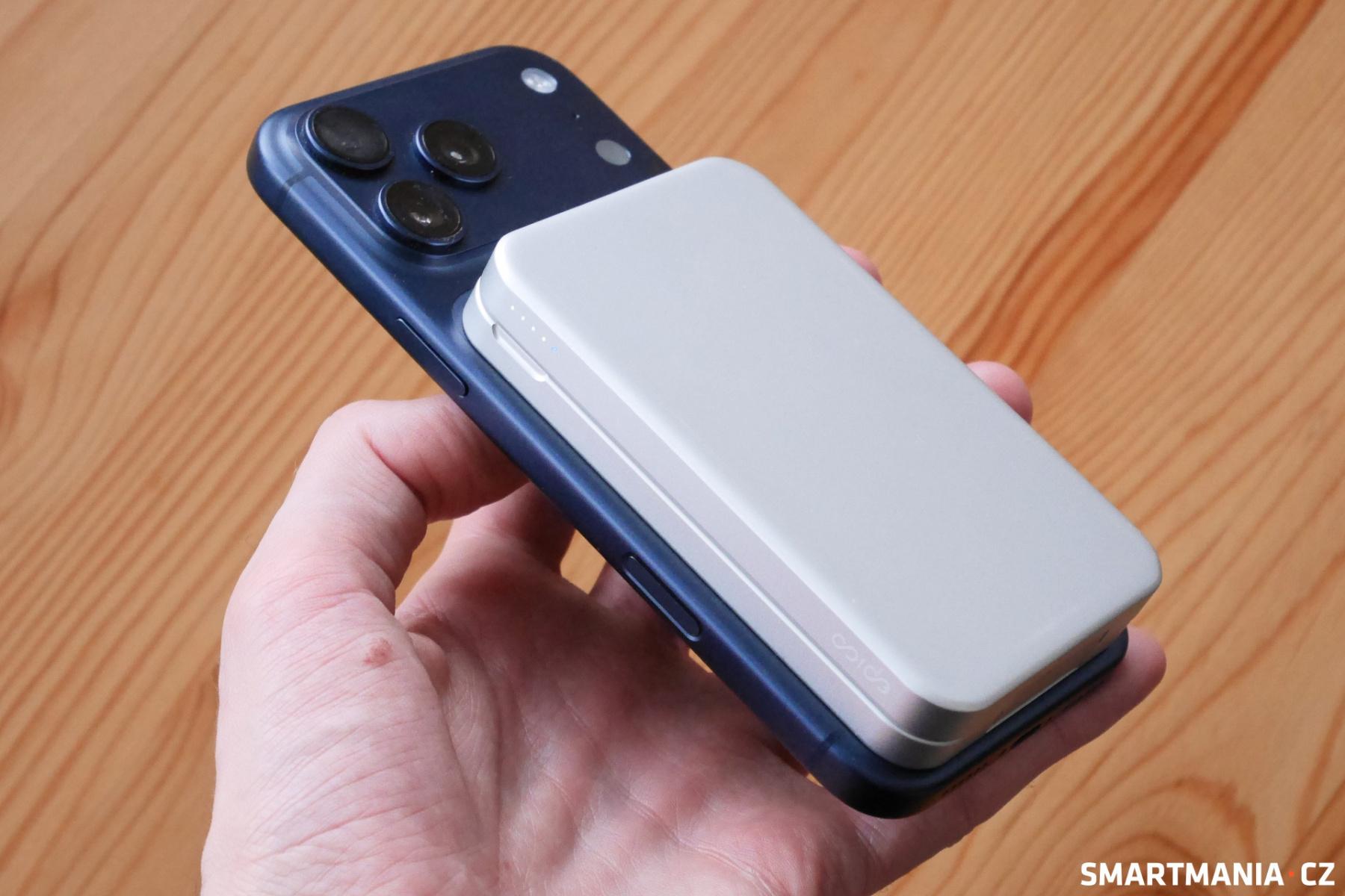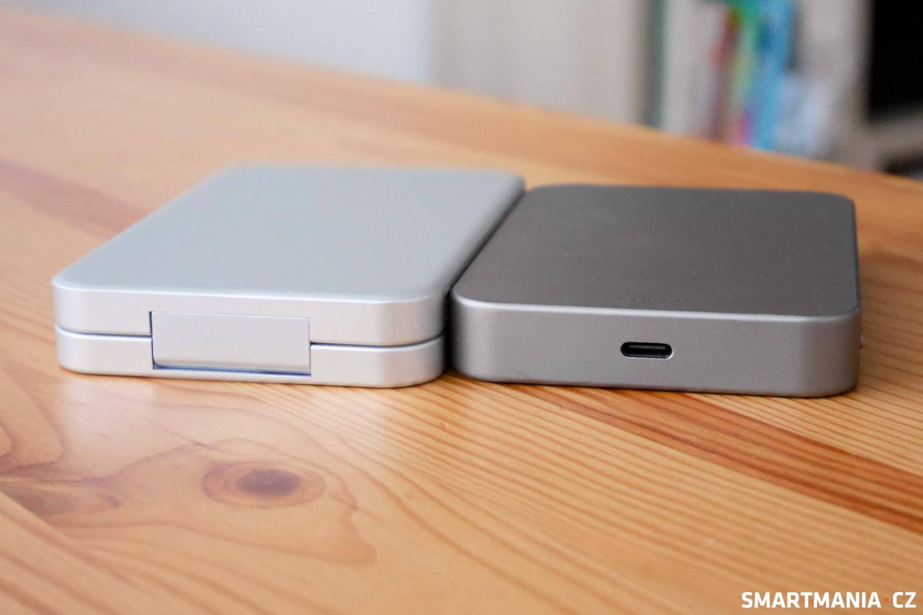 Největší pochvalu ale zaslouží celkové rozměry. Zařízení určitě není nejmenší, ale zároveň byste na první pohled netipovali, že nabízí více než jen powerbanku, kterou přicvaknete na záda vašeho iPhonu. Oficiální specifikace uvádí tyto rozměry: 70 × 110 × 16 milimetrů a hmotnost 210 gramů. Jen pro srovnání, 10000mAh MagSafe powerbanka od stejného výrobce se chlubí rozměry 70 × 102 × 14 milimetrů.