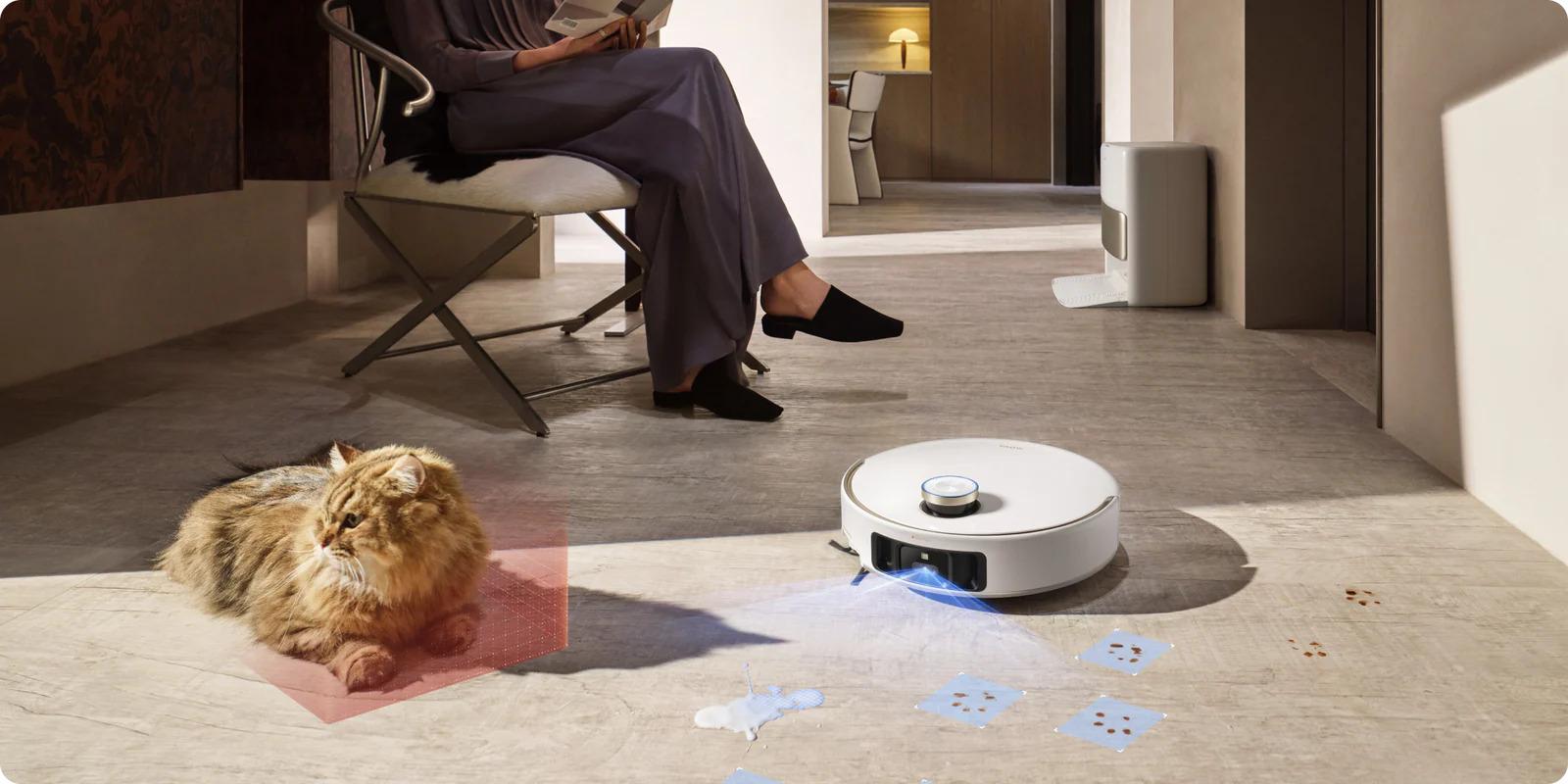 V prostředí se orientuje pomocí lidaru, který navíc pro detekci překážek, předmětů a nahromaděného nepořádku využívá umělou inteligenci. Nebudou mu tedy na obtíž odložené pantofle nebo dětské a psí hračky. V noci si pak umí k lepší orientaci pomoci zabudovaným LED světlem.