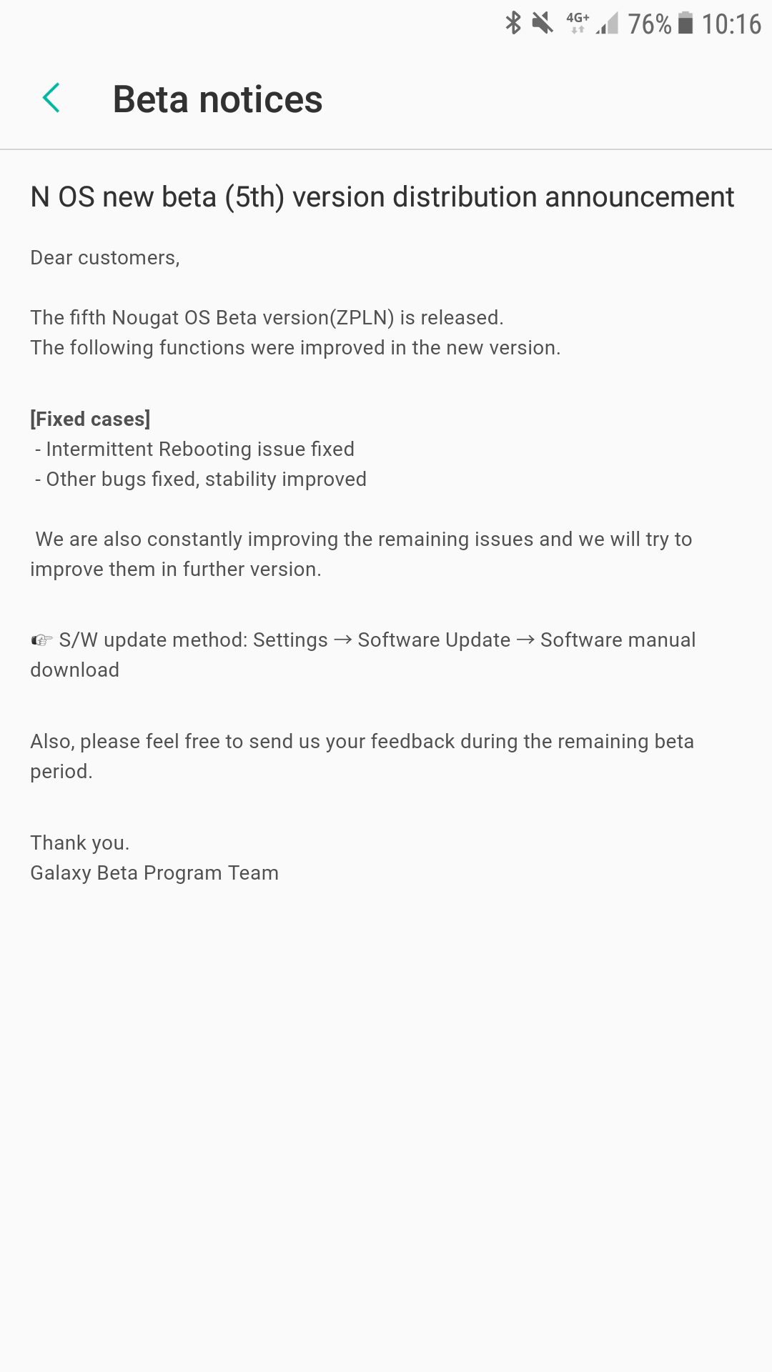 Včera začal Samsung rozesílat pro svá zařízení Galaxy S7 (edge) pátou beta aktualizaci systému Android Nougat. Ta přináší pouze drobná vylepšení a je tak znát, že se uvedení finální verze dočkáme již velmi brzy. Dostupnost aktualizace hlásí uživatelé ve Velké Británii a Jižní Koreji.