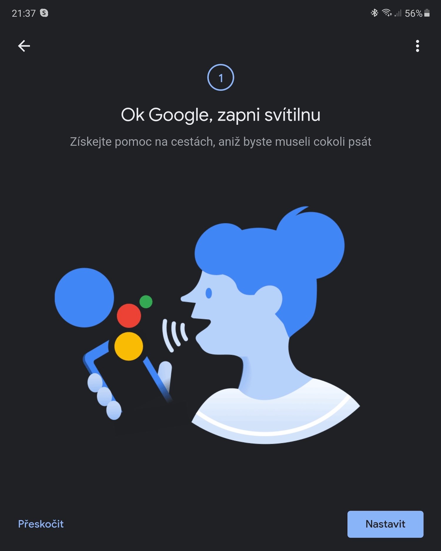 Bohužel, další konfigurační obrazovky už s Google Asistentem neměly nic společného, nicméně když jsem se všemi nabídkami proklikal, ihned jsem zamířil do nastavení aplikace Google k záložce “Asistent“, kde jsem si rozklikl seznam podporovaných jazyků a světe div se, byla zde i čeština.