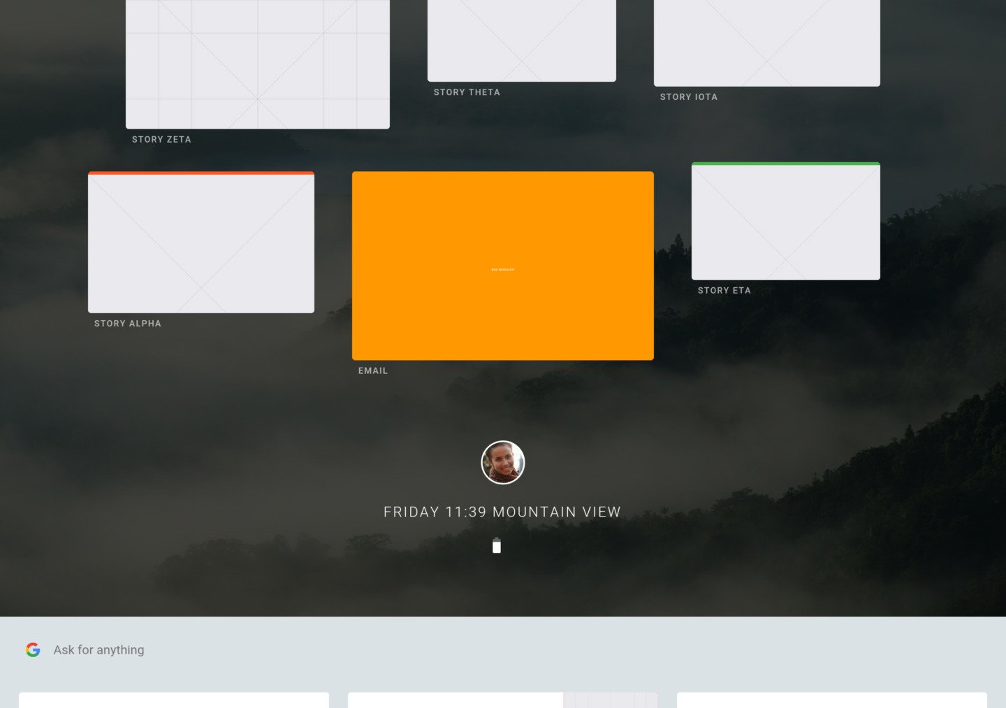 Zatím se jedná o velmi ranou verzi a veškeré znázorněné nabídky jsou pouze zástupci budoucích funkcí. Na telefonu se bude jednat o souvislý vertikální pás (možná proto se prostředí jmenuje pásovec) tzv. příběhových karet, podobných jako v Google Now, na větších úhlopříčkách budou příběhové karty rozmístěny nahodile. Tyto karty se mají řadit podle posledních aktivit, či podle posledního spuštění konkrétní aplikace, návrat domů je pak realizován bílou tečkou dole uprostřed. Přítomen bude i Google Assistant a povinná nastavení jasu, hlasitosti, apod.