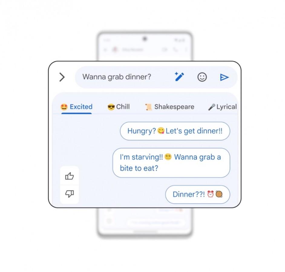 Další AI novinkou mířící na Pixely (6 a novější) je funkce Magic Compose, která díky generativní umělé inteligenci dokáže přepsat zadaný text podle přání – aby byl stručnější, profesionálnější, dramatičtější nebo aby vypadal, jako by jej napsal sám Shakespeare. Tato funkce je poháněna jazykovým modelem Gemini Nano, který pracuje přímo na zařízení a nevyžaduje připojení k internetu.
