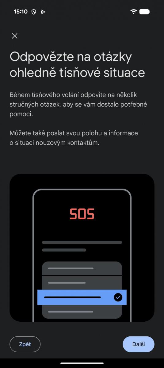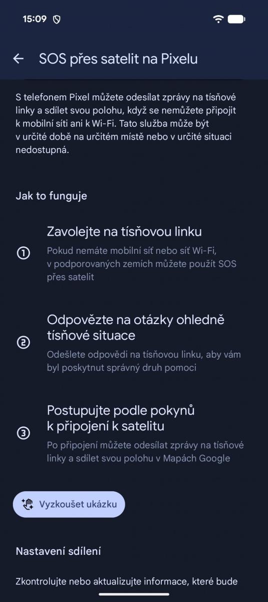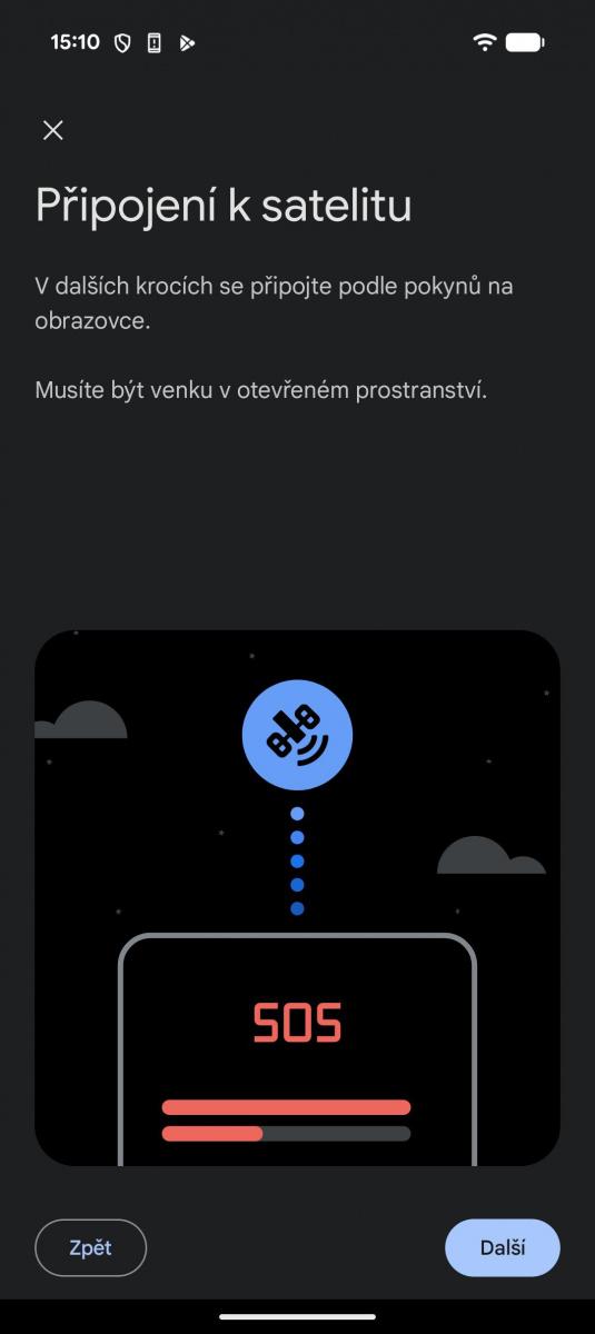 Google Pixel 10a zvládá i satelitní komunikaci. Je však trochu schovaná. Aktivuje se voláním na místní tísňovou linku, pokud není dostupná jiná technologie spojení. Naštěstí vám ale tuto funkci telefon předvede při prvním spuštění.