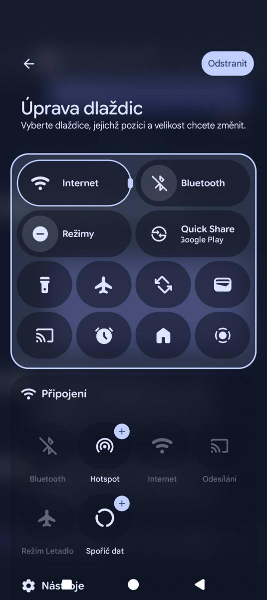 V současném stavu Androidu 16 telefon nepůsobí tak oškubaně, jako ve starších verzích a sem tam vykoukne nějaká ta vychytávka navíc. Rychlá nastavení v roletce už se neřadí do dvou sloupců, ale můžete jim měnit velikost. Strohá šedá dominující celému systému byla nahrazena živějšími odstíny, jejichž množství se rovněž zvýšilo. Vítám i takovou maličkost, jako že vedle ukazatele baterie se v rozbalených notifikacích ukáže odhadovaná doba do úplného vybití. Poprvé jsem si také mohl vyzkoušet navigaci na AOD obrazovce a od té doby doufám, že si to vyzkouším i na soukromém telefonu.