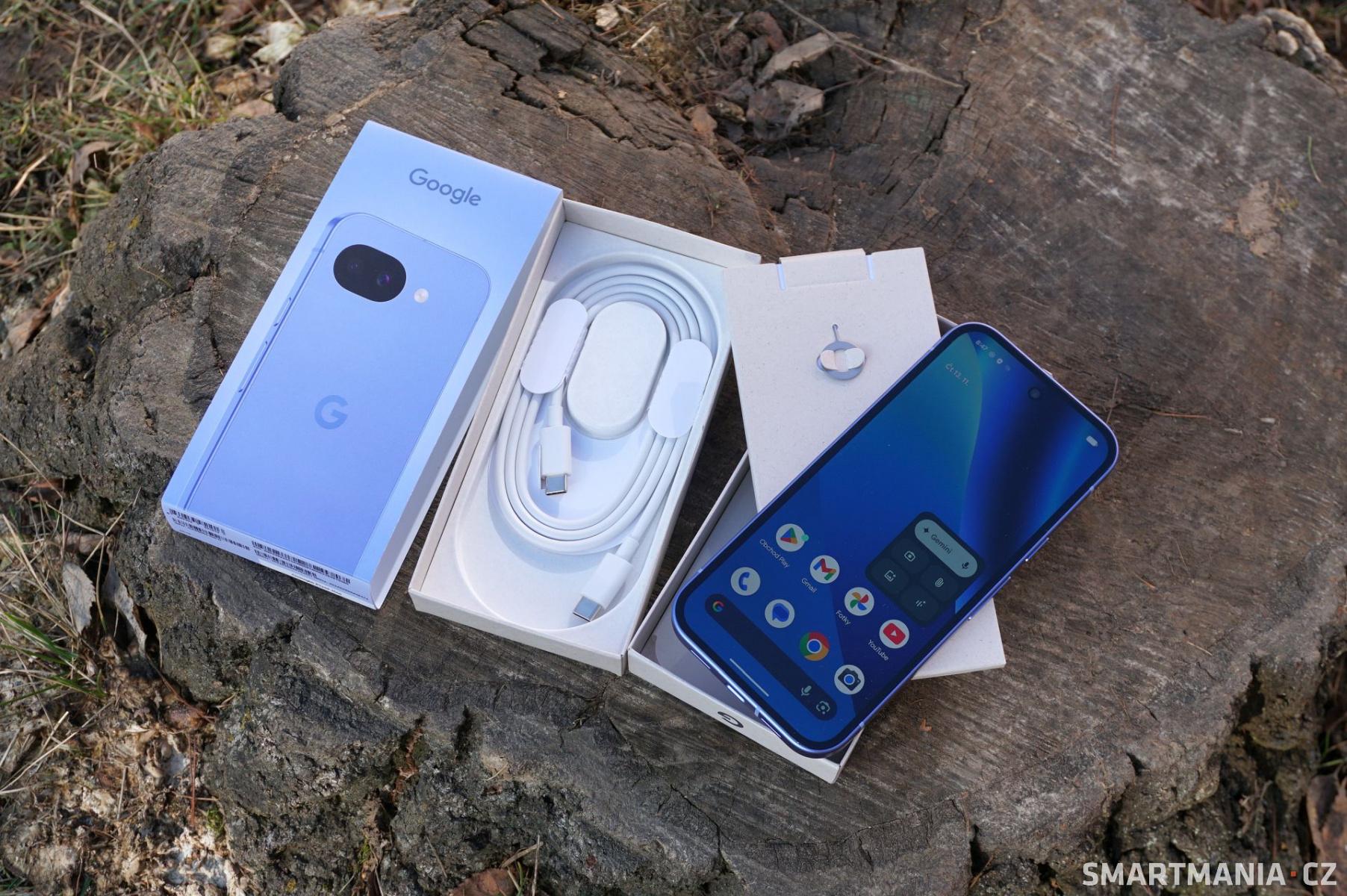 Google v oblasti příslušenství nikdy nebyl moc štědrý, aspoň co mi paměť sahá. Naopak byl jedním z prvních, kdo odstranil USB-A z přibaleného kabelu a rozkázal, že pouze v USB-C věřiti budem. S přibývajícími léty se na tomto zvyku nic nezměnilo. V recyklovaném boxu přebaleného barevným páskem dostanete opravdu jen telefon samotný, datový kabel a sponku na SIMkový slot. Žádný kryt, žádná fólie, žádná nabíječka.