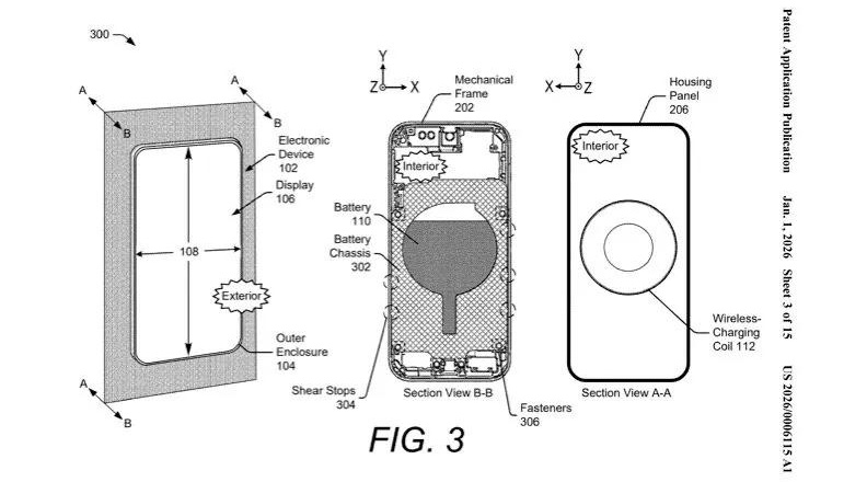 Nový design baterie neomezuje tenký a koherentní design, kterým se vyznačují moderní prémiové smartphony a tablety. Nová patentová přihláška popisuje systém umožňující výměnu baterie. Zjednodušeně řečeno, baterie není přilepena lepidlem, ale je umístěna v kovovém rámu, který ji chrání před namáháním, ohnutím, zkroucením nebo pádem. Díky tomuto designu lze baterii snadněji vyjmout nebo vyměnit, což potenciálně zlevní opravy a sníží množství odpadu.
