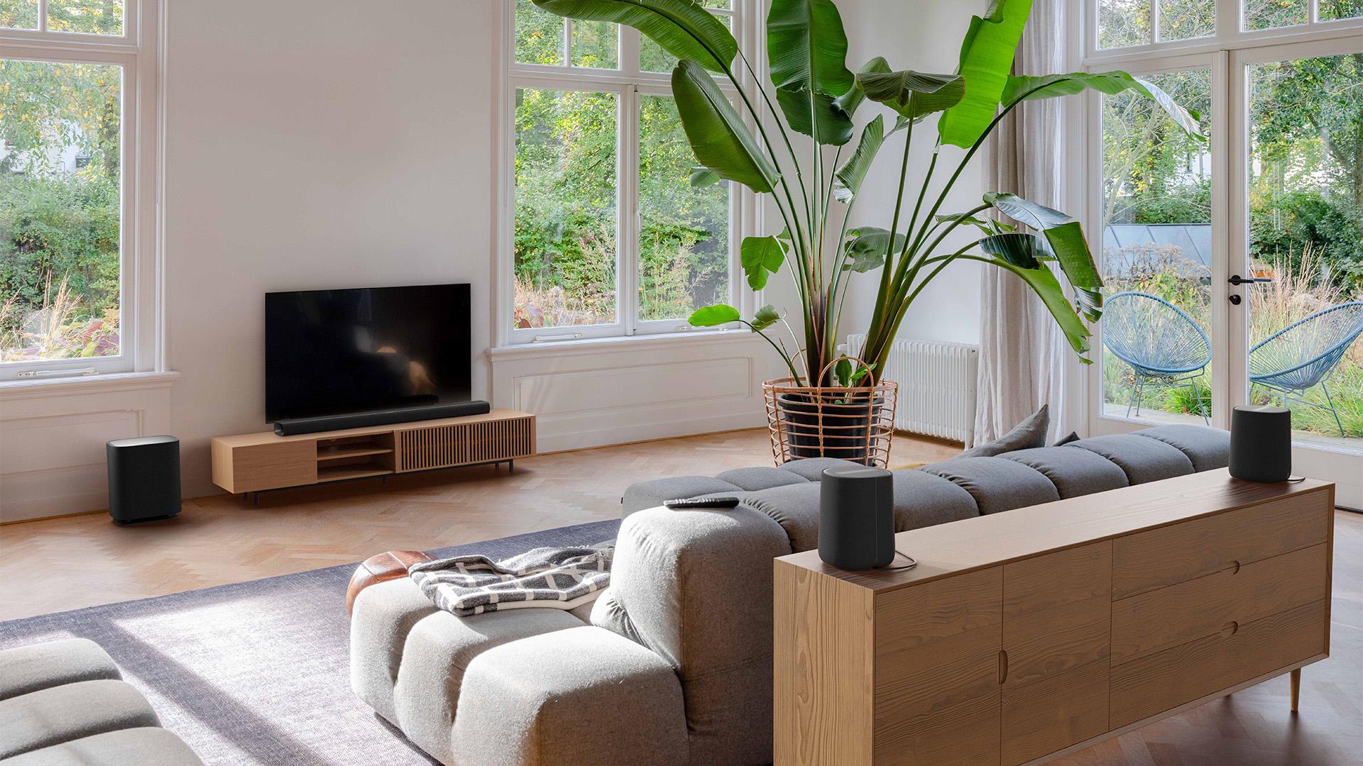- 360° audio s vyváženým zvukem naplní místnost hudbou ze všech stran