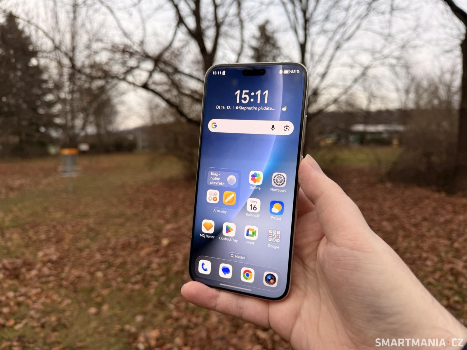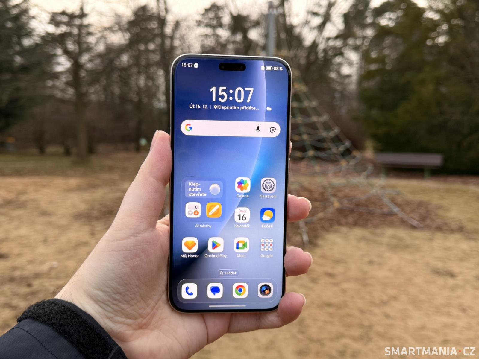 Hned po rozbalení běží Honor Magic 8 Pro na Androidu 16 a nadstavbě MagicOS 10.0, která má sice jubilejní číslovku, ale na dramatické změny nedošlo. Největší designovou změnou je následování Liquid Glass od Applu. V systému tak narazíte na různé skleněné, průhledné a rozmazané efekty. Obecně je ale systém stabilní, velkým plusem je softwarová podpora dalších sedm let. A to jak bezpečnostních záplat, tak i aktualizací na nové verze Androidu.