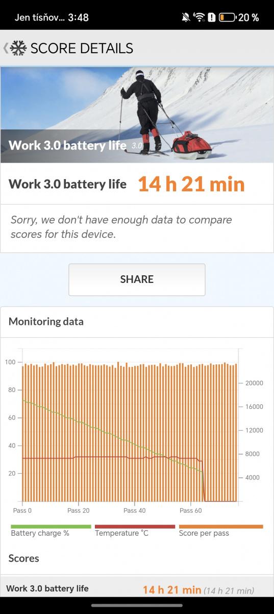 Nebýt o něco omezenější kapacity baterie na evropském trhu, mohl se řadit společně s Oppo Find X9 Pro k vlajkovým lodím s nejlepší výdrží baterie, takhle je ale mírný nadprůměr. Podobně je to u displeje, na zcela nejlepší nestačí, ale je hned v těsném závěsu. Výkonem patří na vrchol, ale také to není něco, proč si jej vybrat, obzvlášť když jej za chvíli doplní další vlajkové modely vybavené stejným Snapdragonem.