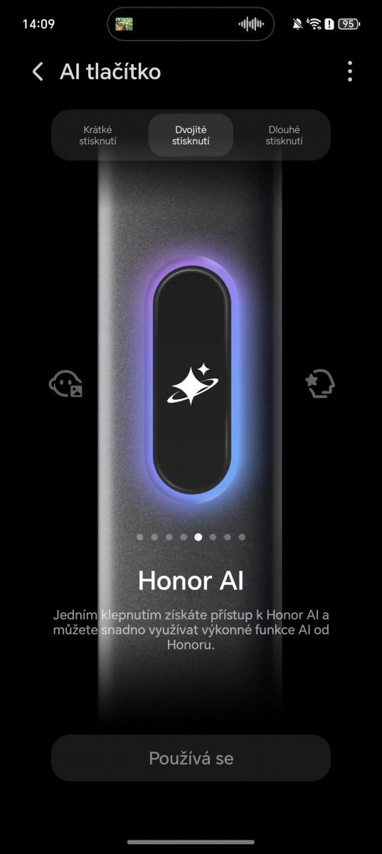 Zcela úsměvná je aplikace nastavení tohoto tlačítka, která vypadá identicky jako nastavení u Applu. V ní si můžete nastavit tři různé volby podle stisknutí, a i když se jedná o „AI tlačítko“ v základu slouží pro aplikaci fotoaparátu.