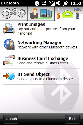 Komunikaci s dalšími zařízeními zajistí Bluetooth 2.1 s podporou celé řady profilů (EDR, A2DP…). HD Mini jsem otestoval s Bluetooth reproduktorem JustMobile Bluetune, který používám k testování všech zařízení a vše fungovalo na výbornou. Stabilní bylo i přehrávání hudby přes standardní A2DP sluchátka. Bluetooth můžete využít jak k přenosu zvuku a telefonování, tak třeba pro posílání souborů mezi dostupnými zařízeními nebo k tisku dat na Bluetooth tiskárně. Dále přes něj můžete synchronizovat data s počítačem (za předpokladu, že máte nainstalovaný program ActiveSync nebo Windows Mobile Device center). Samotný správce Bluetooth pochází přímo od HTC a je přehledně zpracovaný.