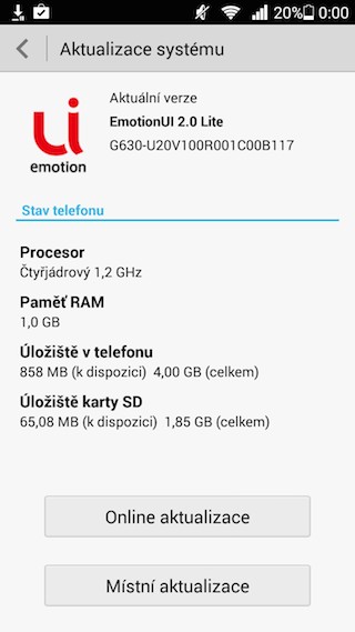 Huawei Ascend G630 se prodává s operačním systémem Android ve verzi 4.3 a za celou dobu používání mi nenabídl žádnou aktualizaci. Tímto tedy výrobce nepotěší. Už u naší recenze na Huawei Mediapad X1 jsme poukázali na zastaralost operačního systému, zde musíme udělat to samé. V době, kdy konkurence nepřichází na trh s ničím jiným než verzí 4.4 KitKat, nepůsobí starší verze systému u Huawei příliš povzbudivě.