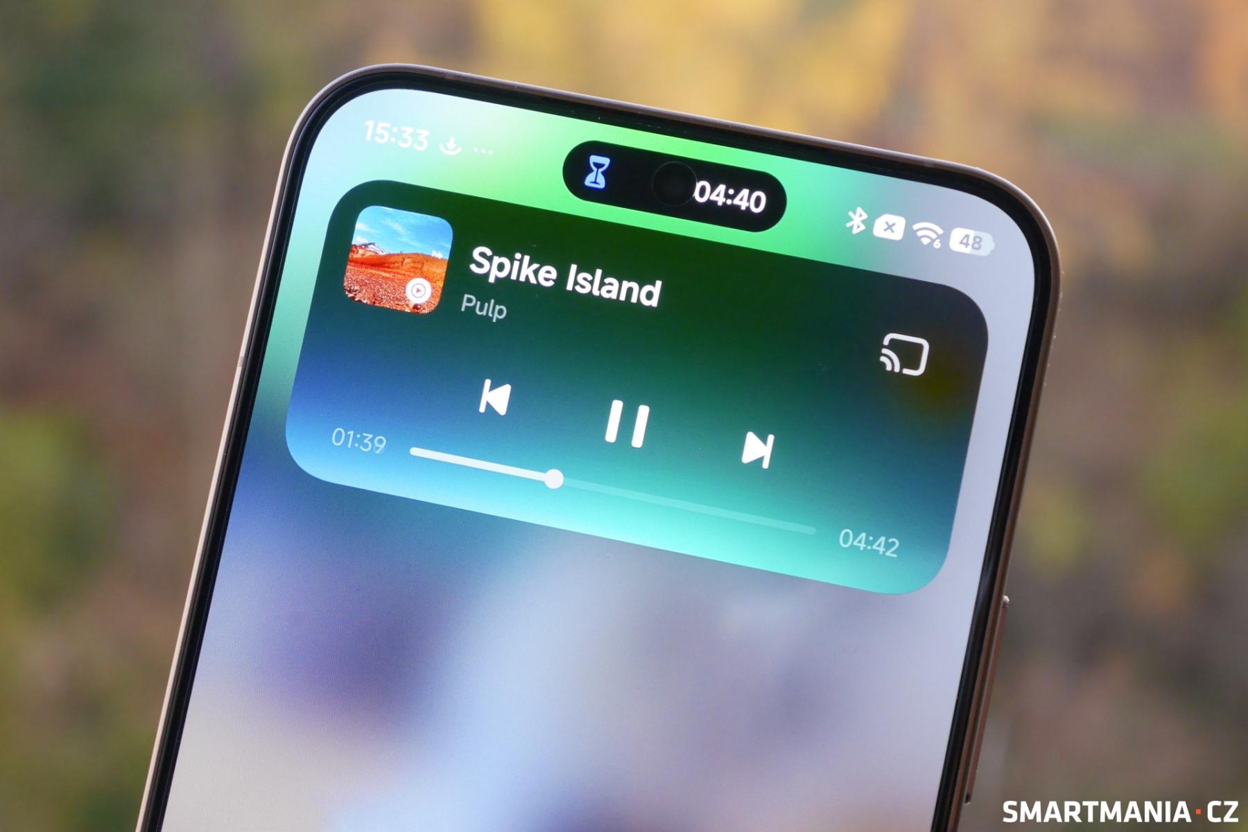 HyperIsland je nová interaktivní oblast v horní části displeje, která nahrazuje klasická oznámení a rozšiřuje je o živé informace. Uživatel tak vidí aktuální dění – spuštěnou navigaci, příchozí hovory, minutku, stopky nebo přehrávání hudby – mnohem přehledněji a elegantněji než dříve. Prvek je vždy po ruce a dá se rychle rozkliknout, takže funguje jako rychlá informační zóna a zkratka pro některé běžící procesy bez nutnosti otevírat aplikace.