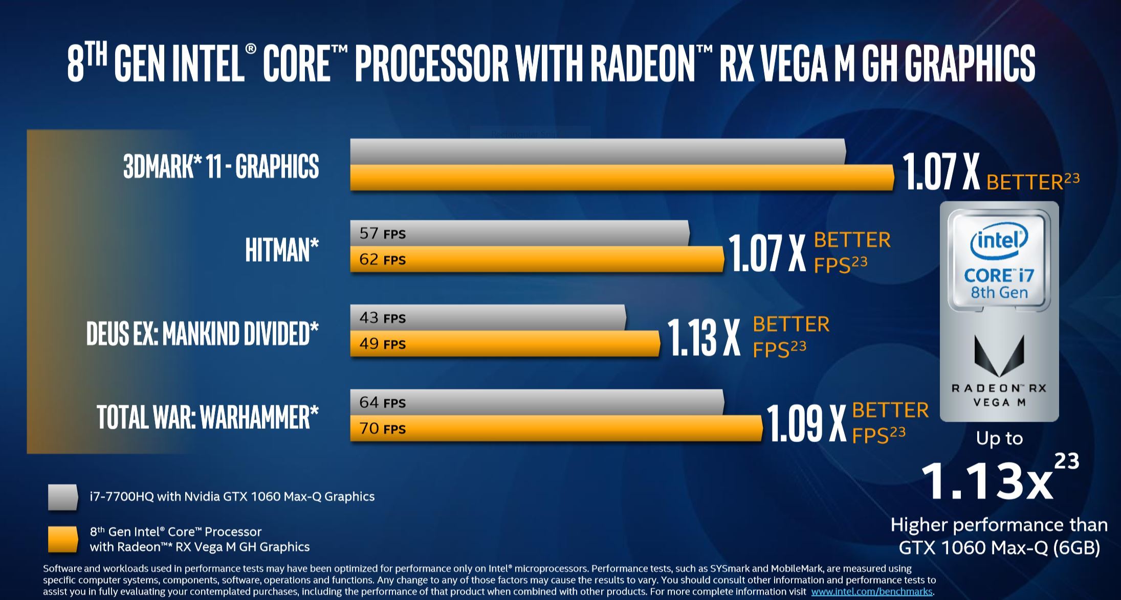 Společnost Intel na veletrhu CES představila nové produkty, které by mohly alespoň částečně překrýt negativní obraz veřejnosti způsobený bezpečnostními chybami v procesorech, které vypluly na veřejnost v minulém týdnu. Intel do Las Vegas přivezl osmou generaci procesorů Intel Core série H, které jsou v jedné věci značně unikátní – obsahují integrovaný grafický čip AMD Vega.