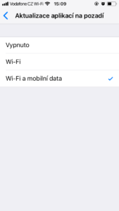 Automatická aktualizace aplikací na pozadí může velmi negativně ovlivnit celkovou životnost baterie na jedno nabití. Existuje však možnost úplného vypnutí či minimálně uživatelského přizpůsobení. V aplikaci Nastavení stačí přejít do menu Obecné a zde do menu Aktualizace aplikací na pozadí. Zde je v prvním menu možnost úplného vypnutí aktualizací, případně zapnutí v režimu připojení k Wi-Fi síti. Poslední možností je využití nejen Wi-Fi sítí, ale i dat operátora.