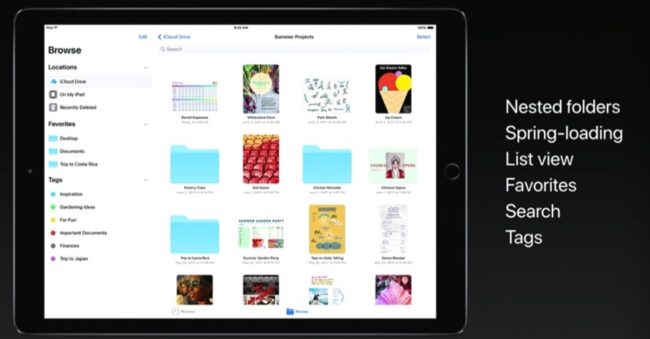 Jedenáctá verze systému přinese řadu nových funkcí na tablety iPad. Potvrzena je podpora funkce Drag and Drop mezi dvěma okny v režimu Split View, o které jsme psali v tomto článku. Chybět nebude ani dlouho spekulovaný správce souborů (ten je dostupný také pro iPhone).
