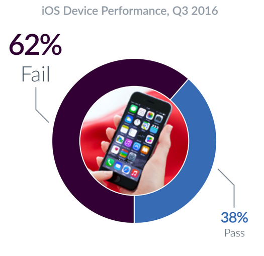 Podle nejnovějšího průzkumu společnosti Blancco Technology Group jsou zařízení s operačním systémem iOS ve třetím čtvrtletí méně stabilní, než roztříštěný Android. Celosvětově zaznamenalo až 62 % všech iPhonů a iPadů nějaký problém, přičemž u zařízení s operačním systémem Android je to „pouze“ 47 %.