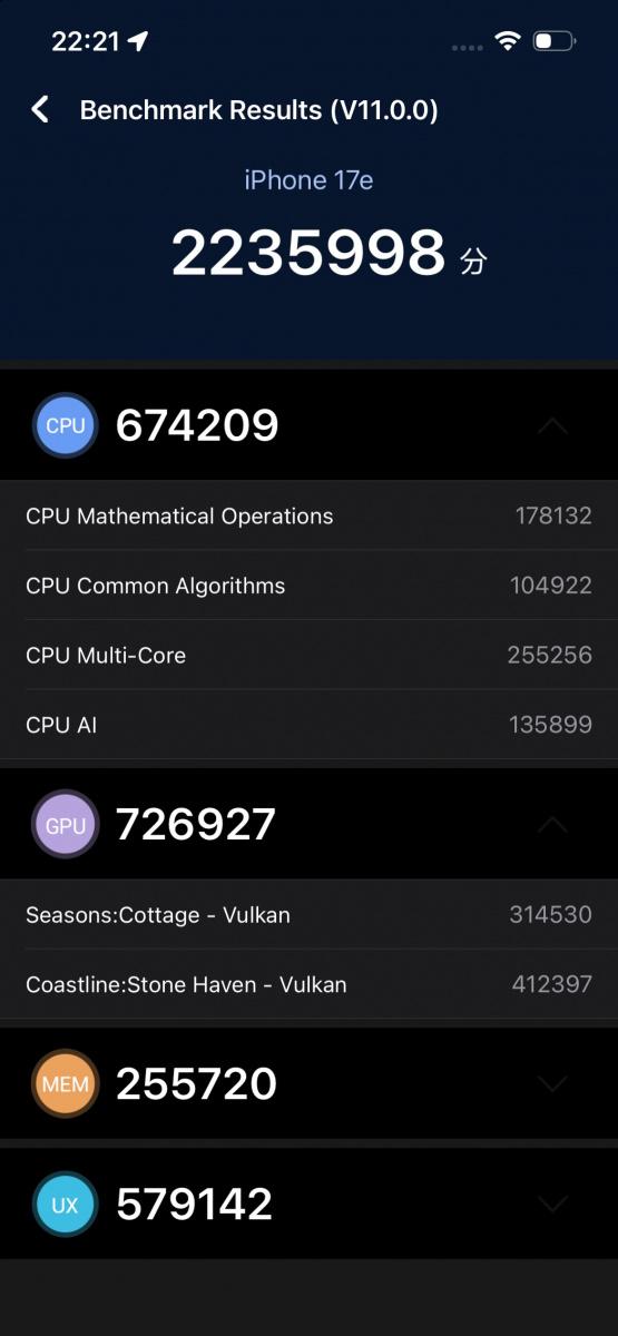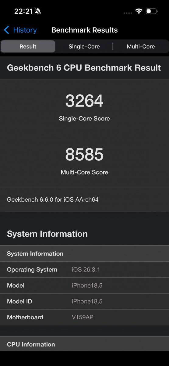 Výsledkem je, že novinka nedisponuje takovým hrubým výkonem pro náročné multimediální operace (například hraní her a různé benchmarky) jako dražší sourozenci. V mezigeneračním srovnání je vlastně tento čipset o půl úrovně nad A18 se 4 grafickými jádry. To znamená, že vyšší výkon oproti loňsku tu je, ale jen co by se vešlo za nehet. Jinými slovy, ať už si pořídíte iPhone 17e, iPhone 17 nebo loňský iPhone 16e v doprodeji, výkonu budete mít na rozdávání, a to jak toho výpočetního, tak grafického.