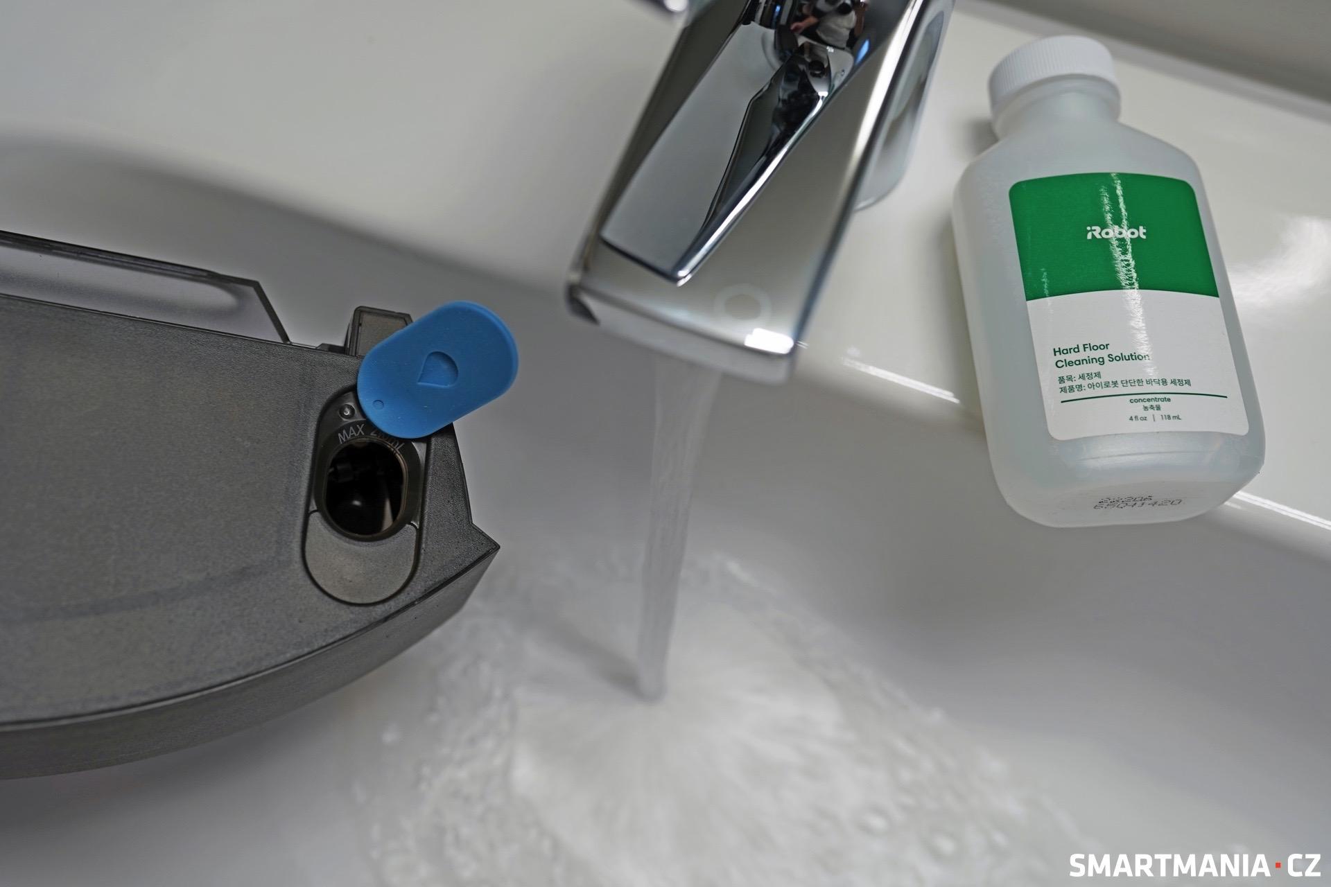 Jedna plná nádobka v naší domácnosti vydržela na zhruba 55 m2, nicméně velikost vytřené plochy výrazně ovlivní, jak členitě máte rozmístěný nábytek i jak moc robot musí kličkovat a vyhýbat se překážkám, případně se na nějaké místo vracet. O doplnění vody si robot sám řekne prostřednictvím notifikace na mobilním telefonu, případně hlasovým oznámením v češtině.