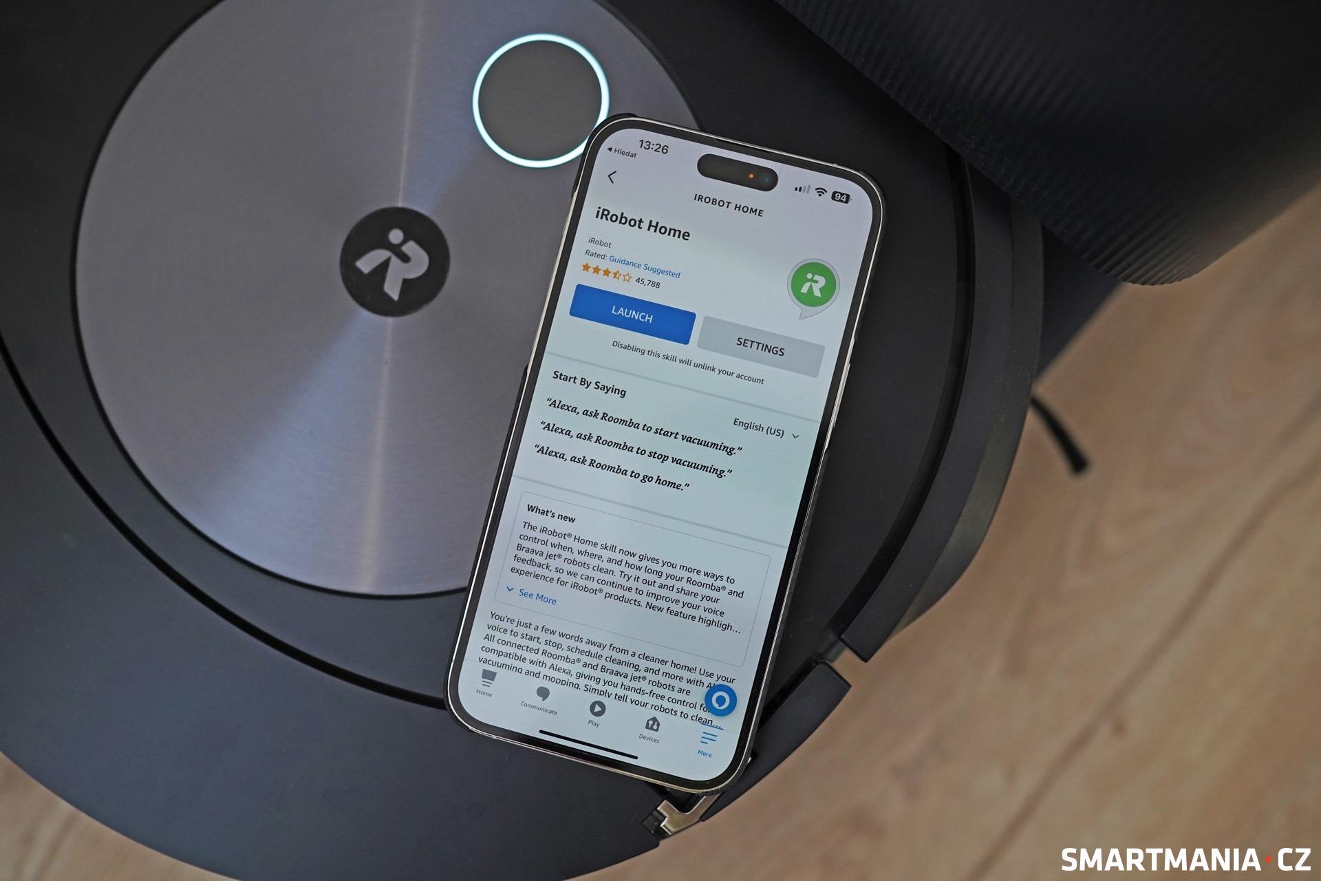 Jakmile robota vybalíte z krabice, musíte jej aktivovat a spárovat s doprovodnou aplikací iRobot, která je dostupná pro Android a iOS. Prostředí je kompletně lokalizované do češtiny (slovenština zatím chybí), přičemž robot vás dokonce v těchto jazycích umí informovat o nejrůznějších úkonech (zahájení/dokončení úklidu, kolize, detekce překážky, …).