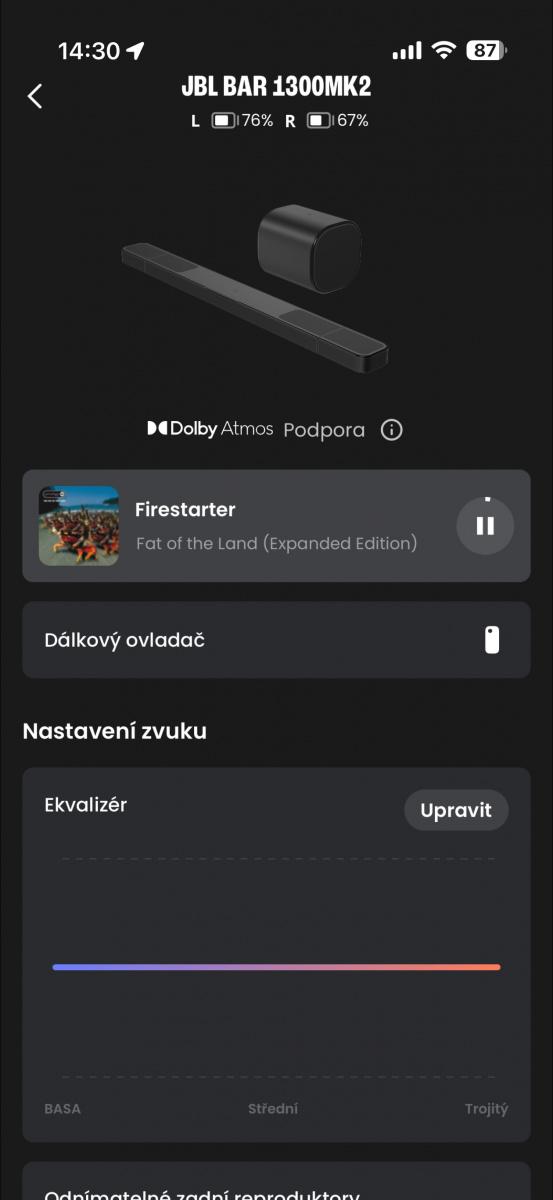 JBL Bar 1300 MK2 je jedno z těch řešení, u kterého není potřeba dlouho hledat „wow moment“ – typicky přijde hned během sledování libovolného filmu s podporou Dolby Atmos, kdy se k masivnímu basovému základu přidá nad hlavou letící helikoptéra nebo déšť padající doslova kolem gauče. Tohle je opravdu zážitek, na který si snadno zvyknete a nebudete se s ním chtít rozloučit.