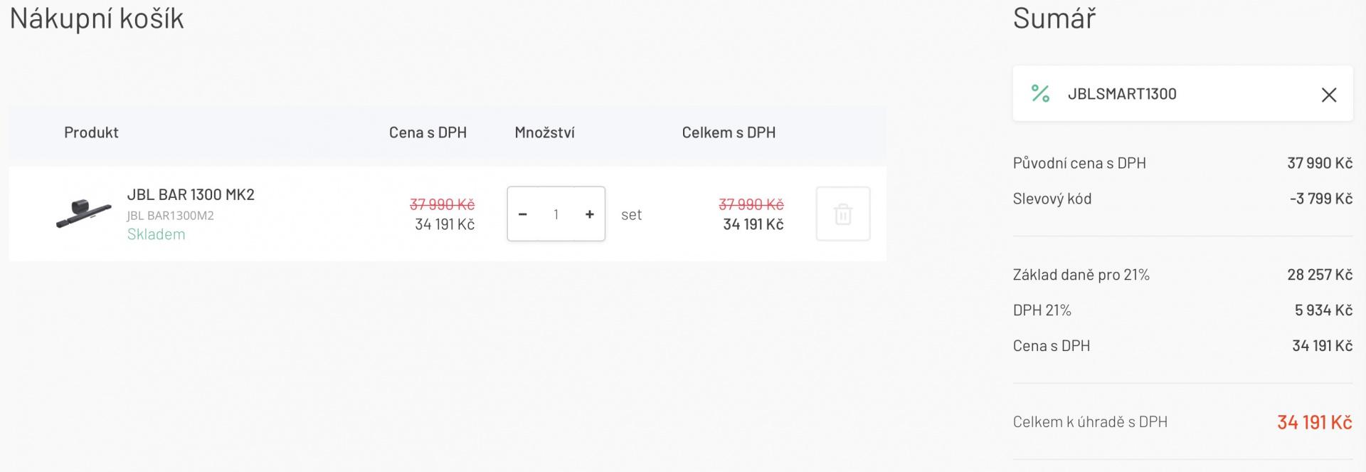 Pro nejrychlejší čtenáře navíc máme speciální slevový kód JBLSMART1300. Pokud jej zadáte do objednávky, sníží se vám cena o 10 % na skvělých 34 191 Kč.