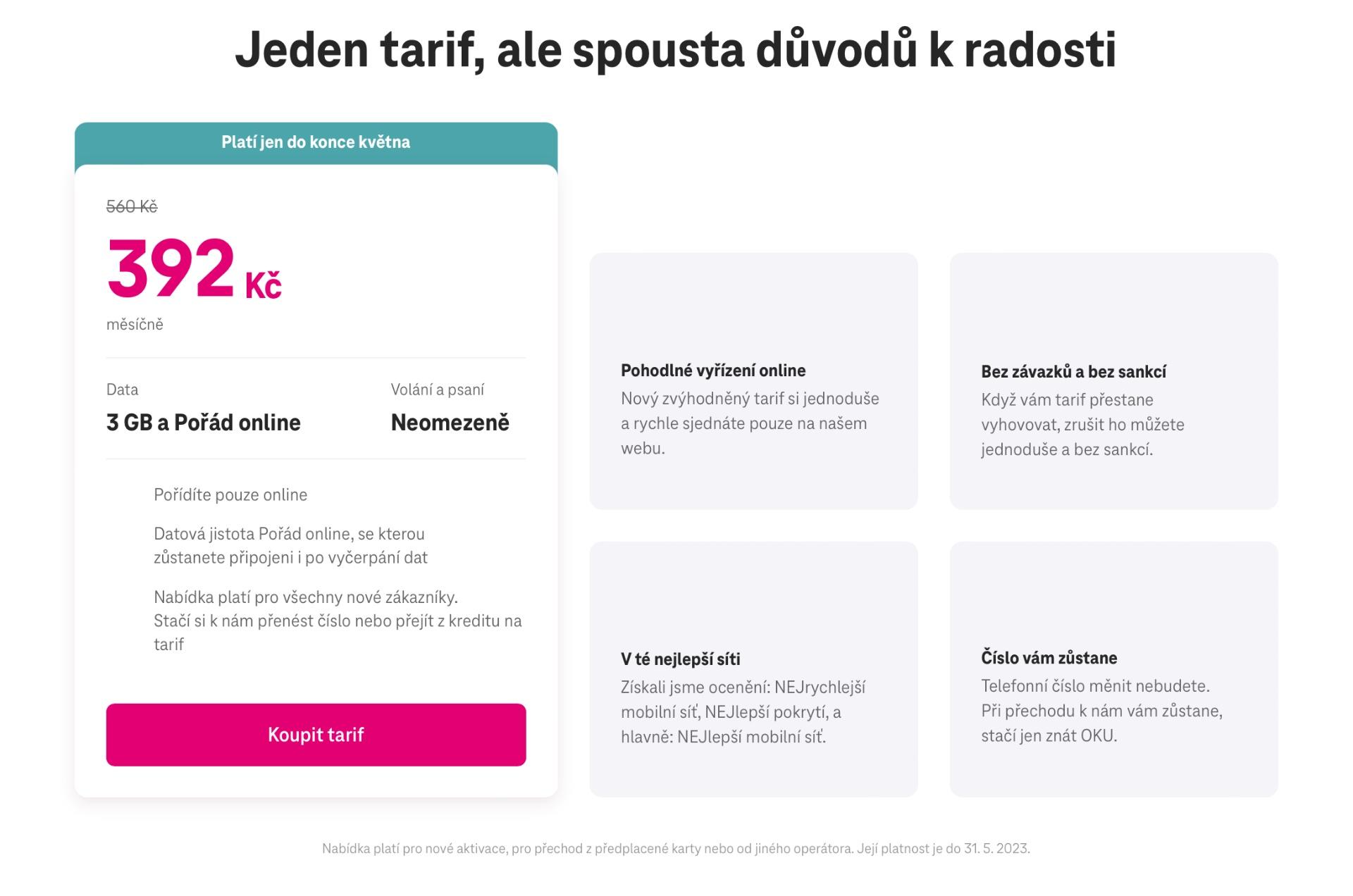 - T-Mobile láká na další zvýhodněný tarif, tentokrát s 3 GB dat a službou Pořád online