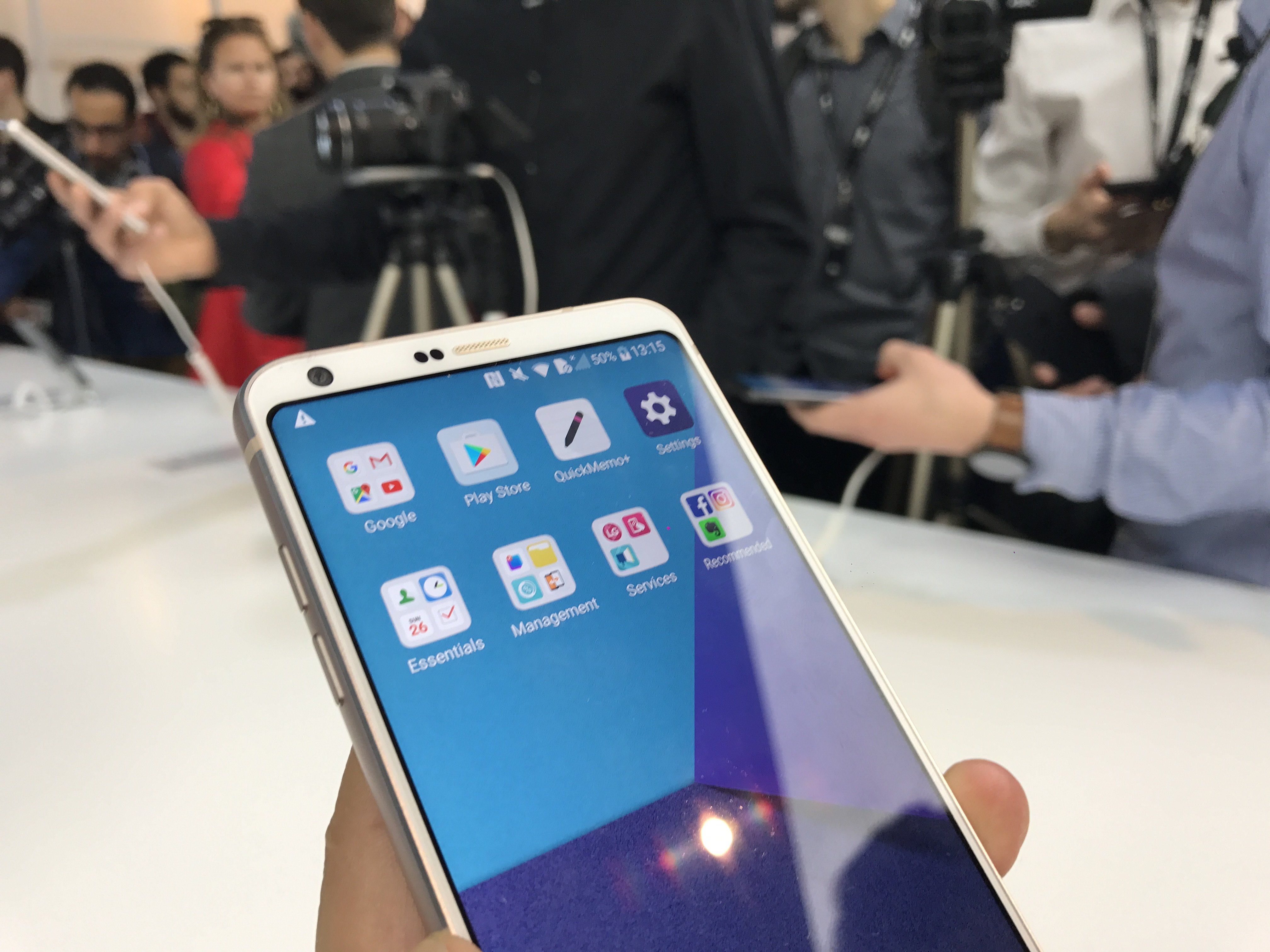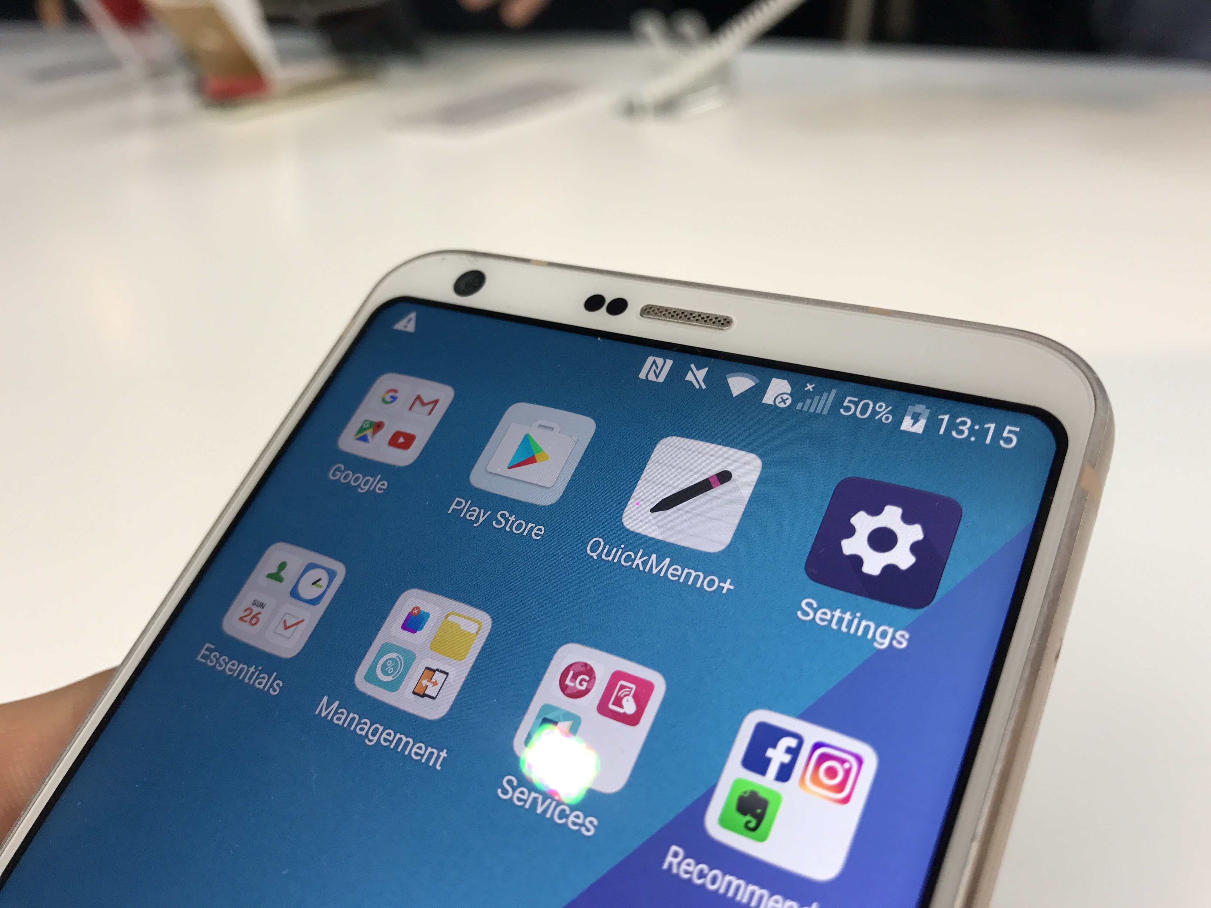 Zajímavostí jsou zaoblené rohy samotného zobrazovače, a také výrazně ztenčené rámečky okolo něj, díky nimž má zařízení prakticky stejné rozměry jako dva roky staré LG G4 s 5,5″ displejem. V LG dokonce zvažovali, zda novinku neosadit postranně zakřiveným displejem, testy na uživatelích ale ukázaly, že toto řešení více unavuje ruce a způsobuje více nepřesnosti.