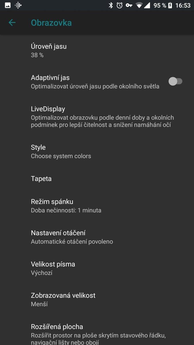 - LiveDisplay měnící teplotu barev displeje pro snazší čtení, lze aktivovat manuálně, automaticky i zcela vypnout