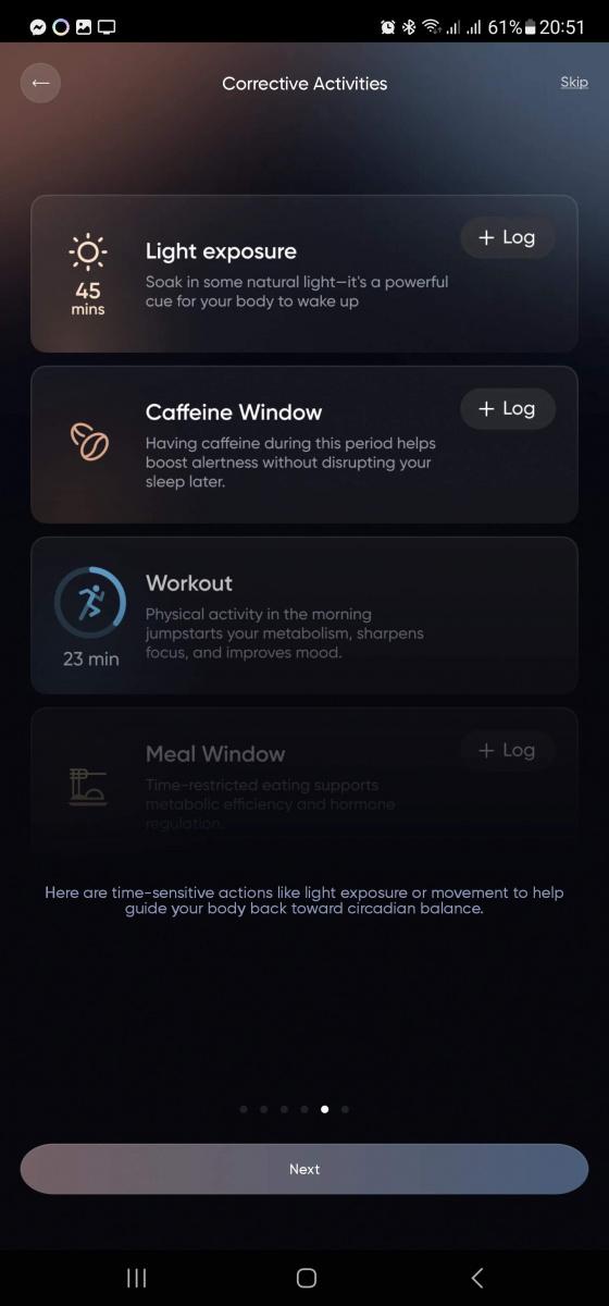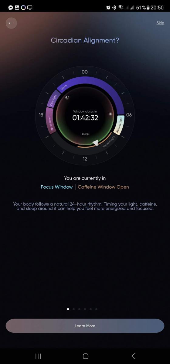 Hodinky většinou hlásí triviální výsledky, že jste udělali rekord v počtu kroků, máte splněný čas aktivity apod., ale nějaká užitečná rada do života se ozve jen sporadicky. Tenhle prstýnek na to jde jinak. Ozve se, že jestli si chcete dát kafe, měli byste to stihnout v nejbližší půlhodině, abyste si nenarušili spánek – protože ví, kdy běžně uléháte, a jestli jste sova, nebo naopak ranní ptáče. Sice už nepozná, jestli skutečně spíte, nebo si jen v posteli lenošíte, ale orientačně to stačí.