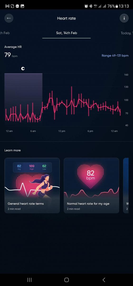A kde je graf, tam je i článek, který mi vysvětlí, na co koukám a proč bych na to koukat měl. Běžně aplikace ukazují jen v barvičkách jak na tachometru v autě: červená je velký špatný, zelená znamená super a modrá značí, že se flákám. Luna každou metriku vysvětlí, ale i zmíní, jaká zdravotní omezení na ni mají vliv, a třeba i doplní tabulku výkonnosti podle věku, pohlaví a kondice.